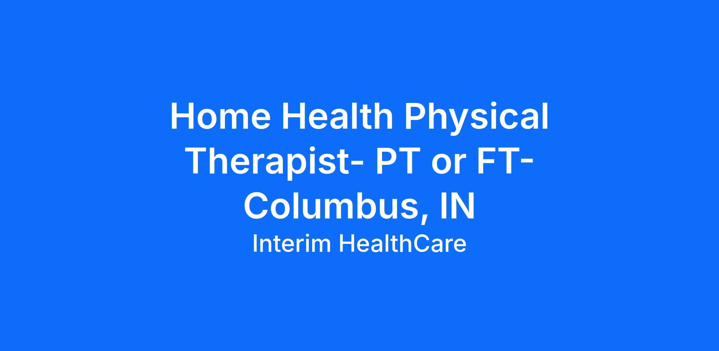 Physical Therapist, PT or FT - Home Health- Columbus, IN