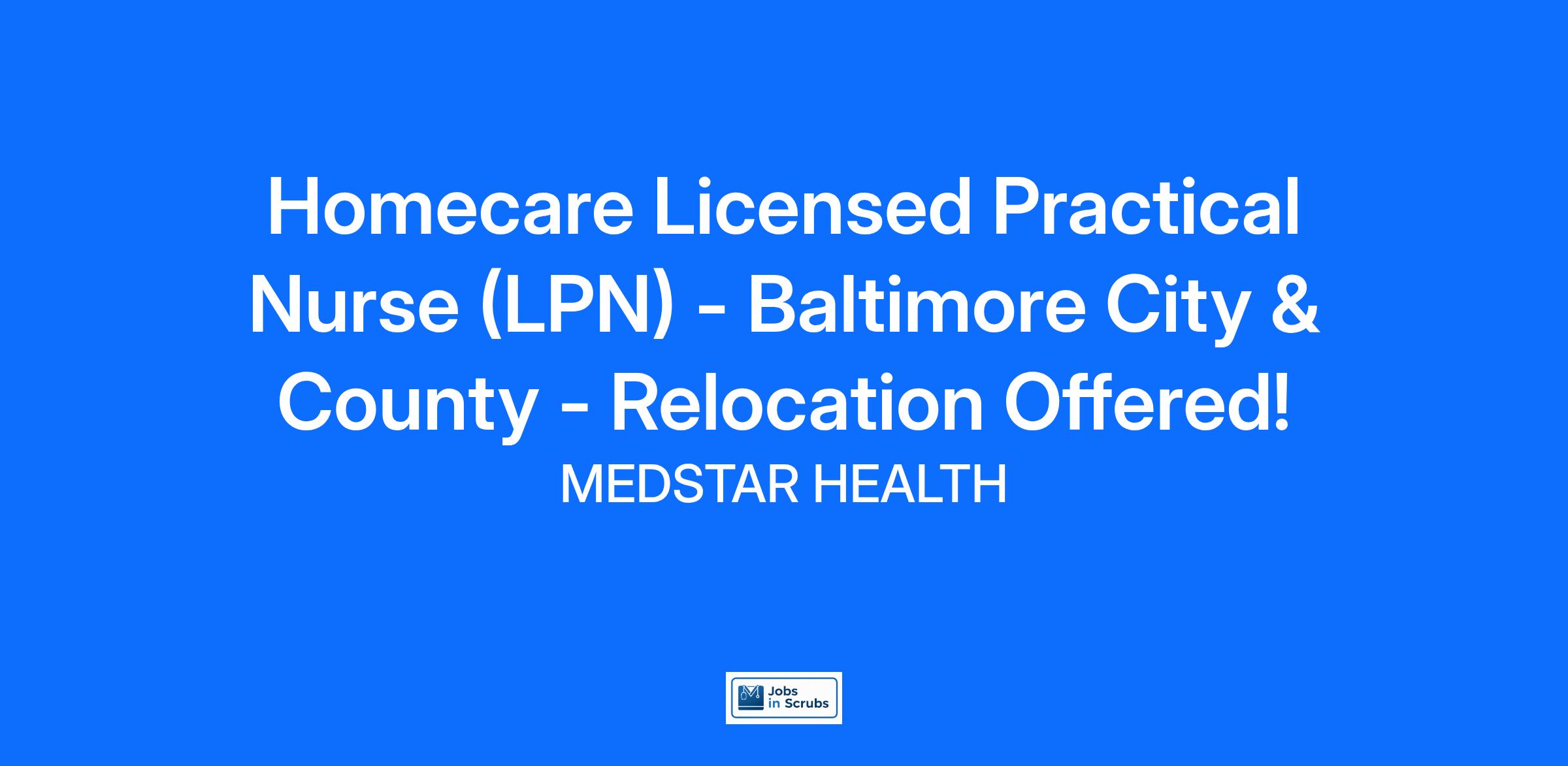 Come join our team as a Licensed Practical Nurse in Baltimore City & Baltimore County area!