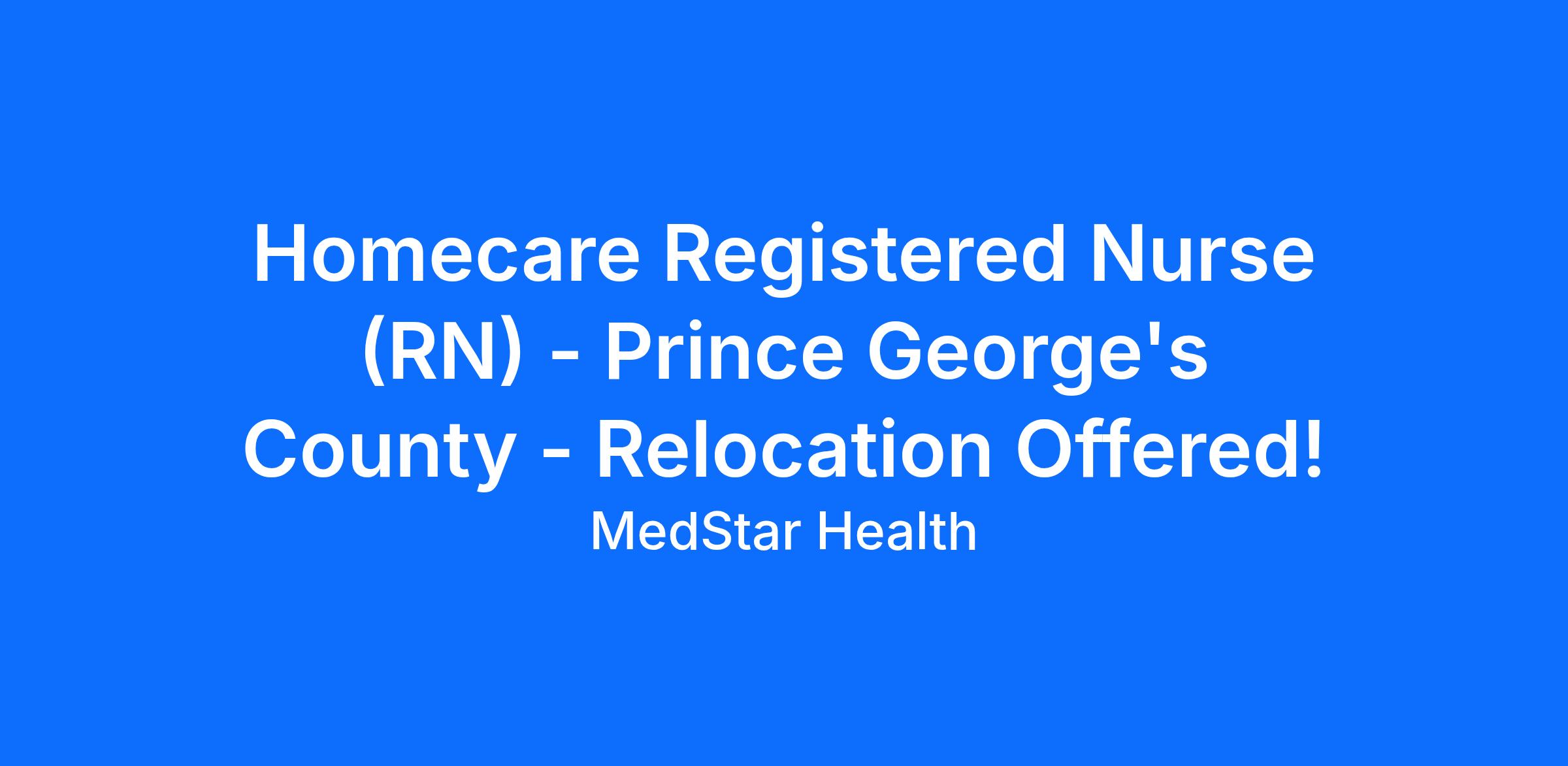 Make a Positive DifferenceAt MedStar Health Home Care, RNs make a positive difference in people’s lives by helping patients heal in the comfort of their own homes. RNs support care plans for each patient and then help patients and their caregivers achieve progress toward their goals for improved health and independence. As a RN at MedStar Health Home Care, you have the autonomy to make individualized patient-centered decisions to promote optimal clinical care.The homecare team includes nurses, physical and occupational therapists, speech and language pathologists, medical social workers, and home health aides who are dedicated to meeting patient needs 24/7/365.Join an award-winning organizationRecognized as a Home Care Elite agency for 10 consecutive years, ranked in the top 25% of agencies in the nation. 2025 Best Home Care Leader in Training Award recipient. MedStar Health Home Care is a “Standout” home health agency, according to the 2024 Healthiest Maryland Businesses Wellness at Work Recognition.