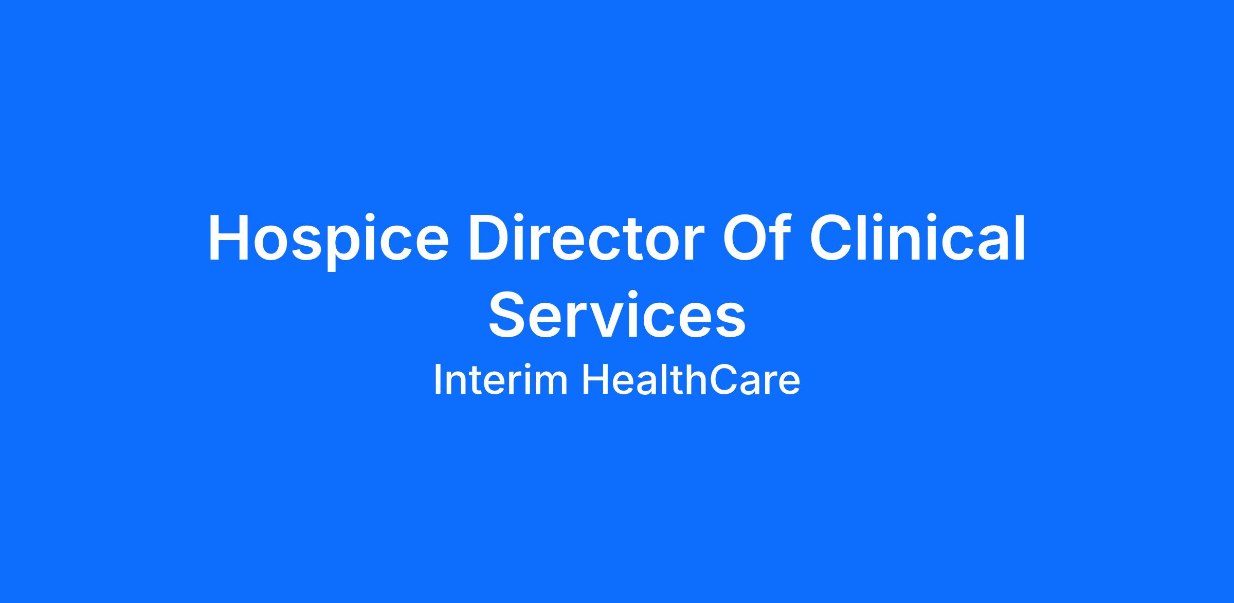 As a Hospice Director of Clinical Services (RN), you will be called to care when you’re needed most. As part of Interim HealthCare, you’ll support a full range of patient services to bring comfort and dignity to our clients.