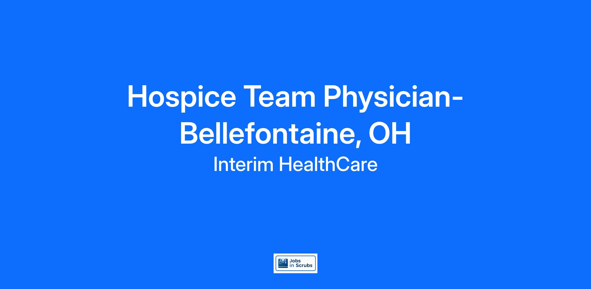 Hospice Team Physician (subcontractor) About 45-60 hours a month as a subcontractor in Bellefontaine area. $175/hour Duties would include IDG meeting twice a month, cover for vacation, on-call rotation, etc.