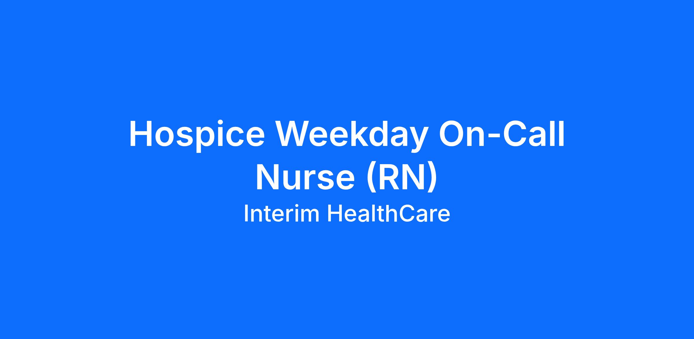 As a Hospice Weekday On-Call Nurse (RN) you will be called to care when you're needed most. As part of Interim HealthCare, you'll support a full range of patient services to bring comfort and dignity to our clients.