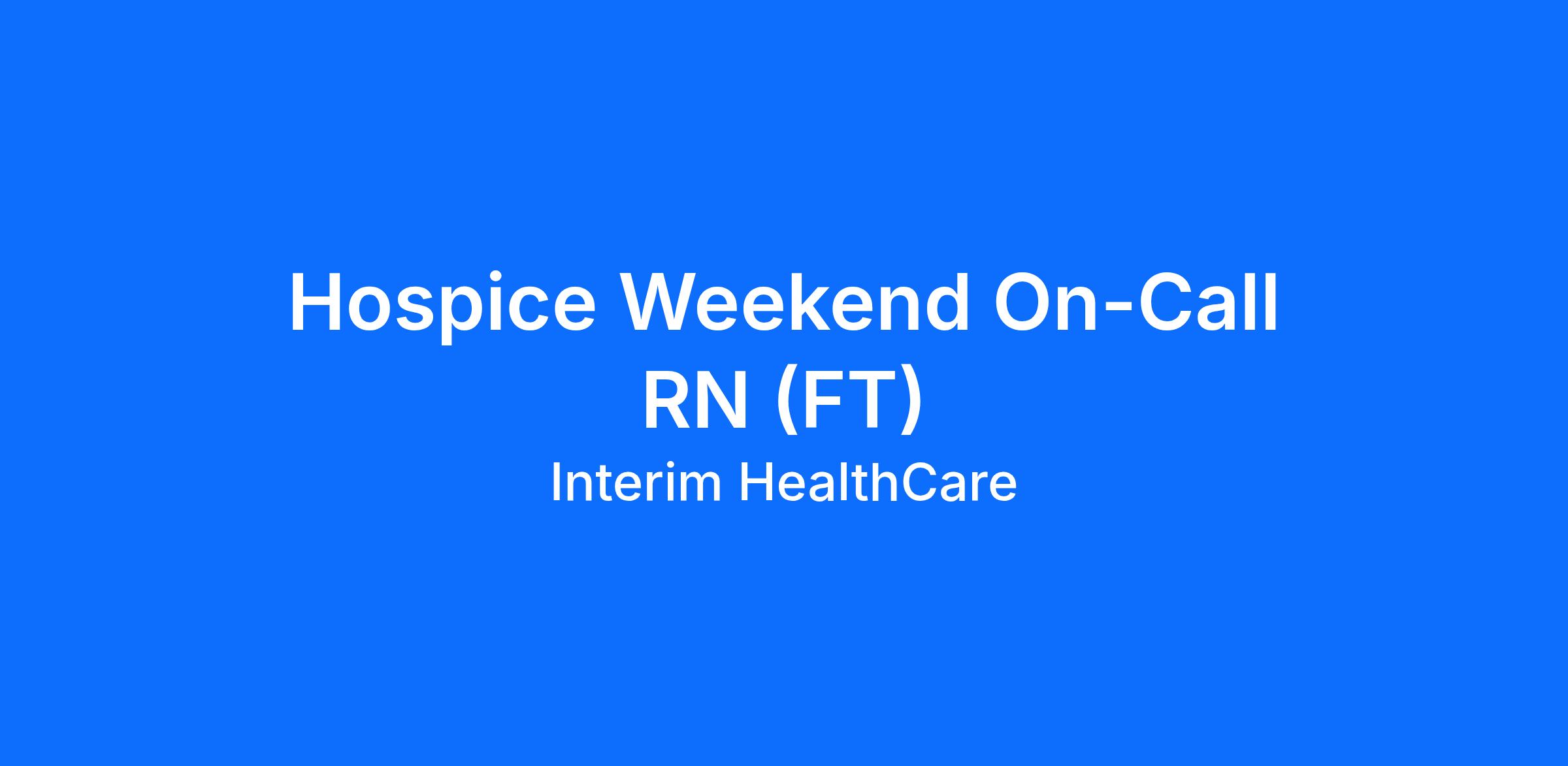 As a Hospice Weekend On-Call Registered Nurse (RN) you will be called to care when you're needed most. As part of Interim HealthCare, you'll support a full range of patient services to bring comfort and dignity to our clients.