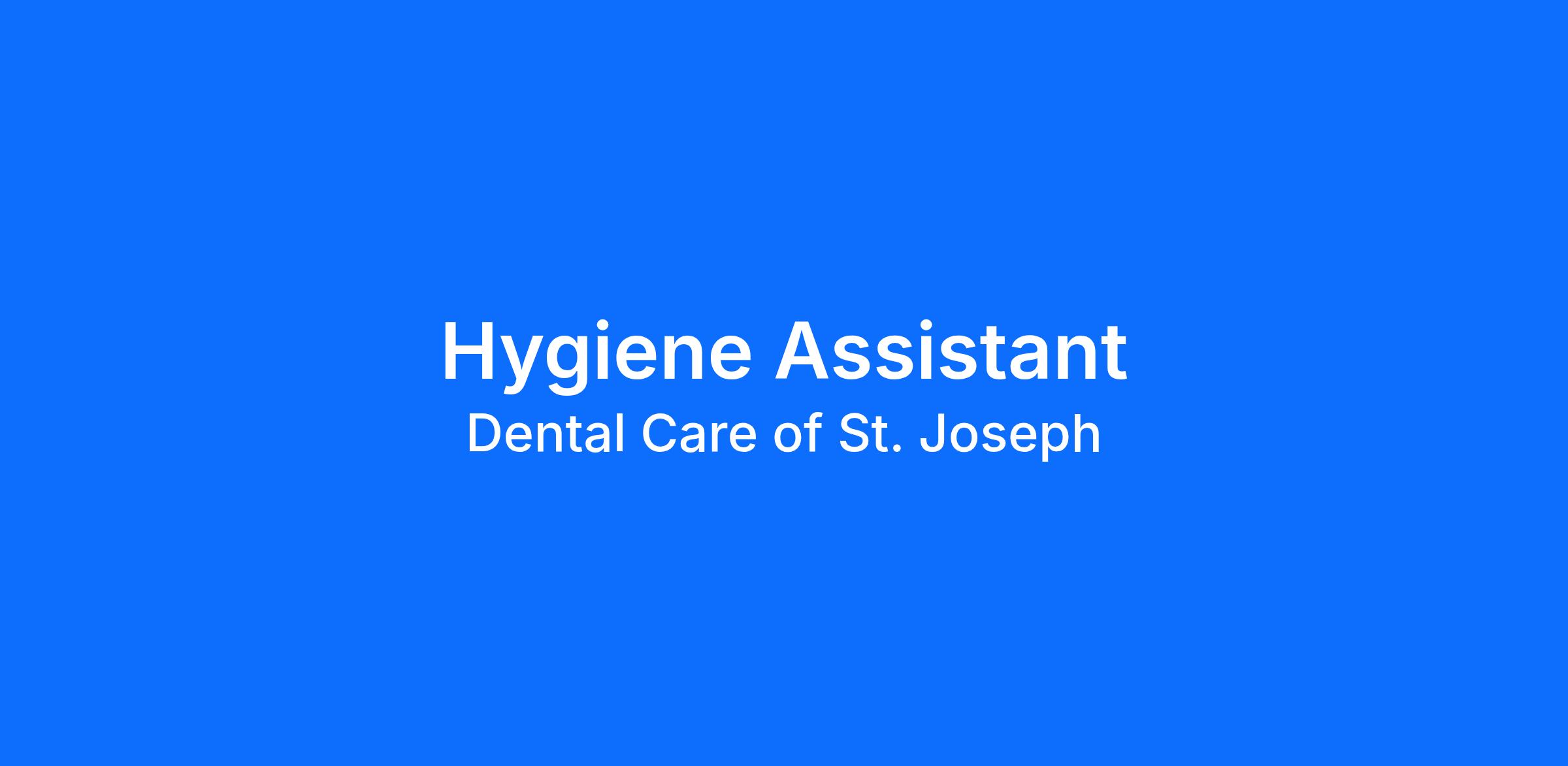 Dental Care of St. Joseph, is looking for a Hygiene Assistant to join our team. This is the perfect role for someone with little to no dental experience to join a world-class organization that offers unparalleled training. Our on-the-job training will give you extensive hands-on dental experience and perfect your assisting skills with a company that offers ongoing development and future career path opportunities. In this role, you will work side by side our amazing hygiene providers to provide the best possible patient care to our local community.