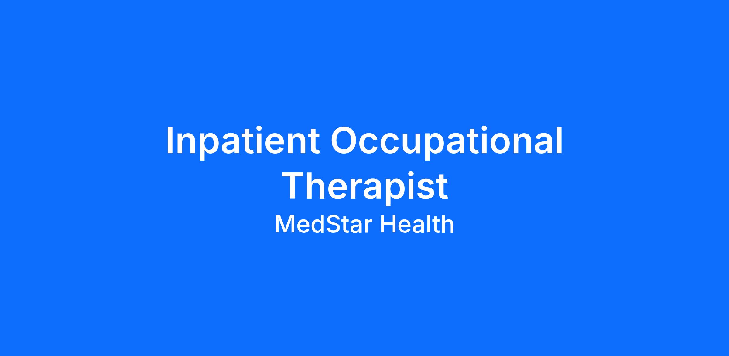 MedStar Health is looking for an Inpatient Occupational Therapist to join our team at Medstar National Rehabilitation Hospital!