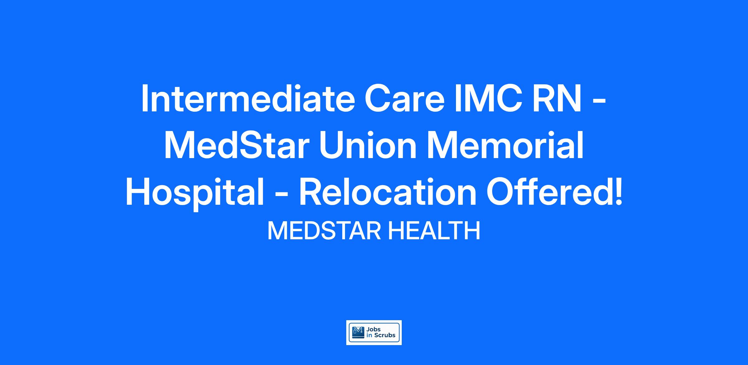 General Summary of Position Step into a fast-paced, high-acuity environment where your skills make an immediate impact. Join a team recognized for excellence in cardiac care, collaboration, and patient-centered innovation. · 22-bed cardiac specialty unit · Advanced clinical experience and meaningful challenges daily · Team-oriented, patient-centered environment focused on safety · 12-hour shifts with weekend on-call rotation Provide skilled, compassionate care to patients with routine to complex needs. Assess conditions, create care plans, and deliver or coordinate interventions in collaboration with the nursing team. · Culture – Supportive, inclusive, and collaborative · Growth – Career mentoring and skill development · Wellbeing – Competitive salary and comprehensive benefits · Reputation – Recognized regionally and nationally for innovation and excellence · ADN, BSN, MSN, or CNL from an accredited School of Nursing · Prior nursing experience preferred · Active MD RN or Compact RN license required · BLS for Healthcare Providers certificationIntermediate Care (IMC) – MedStar Union Memorial Hospital