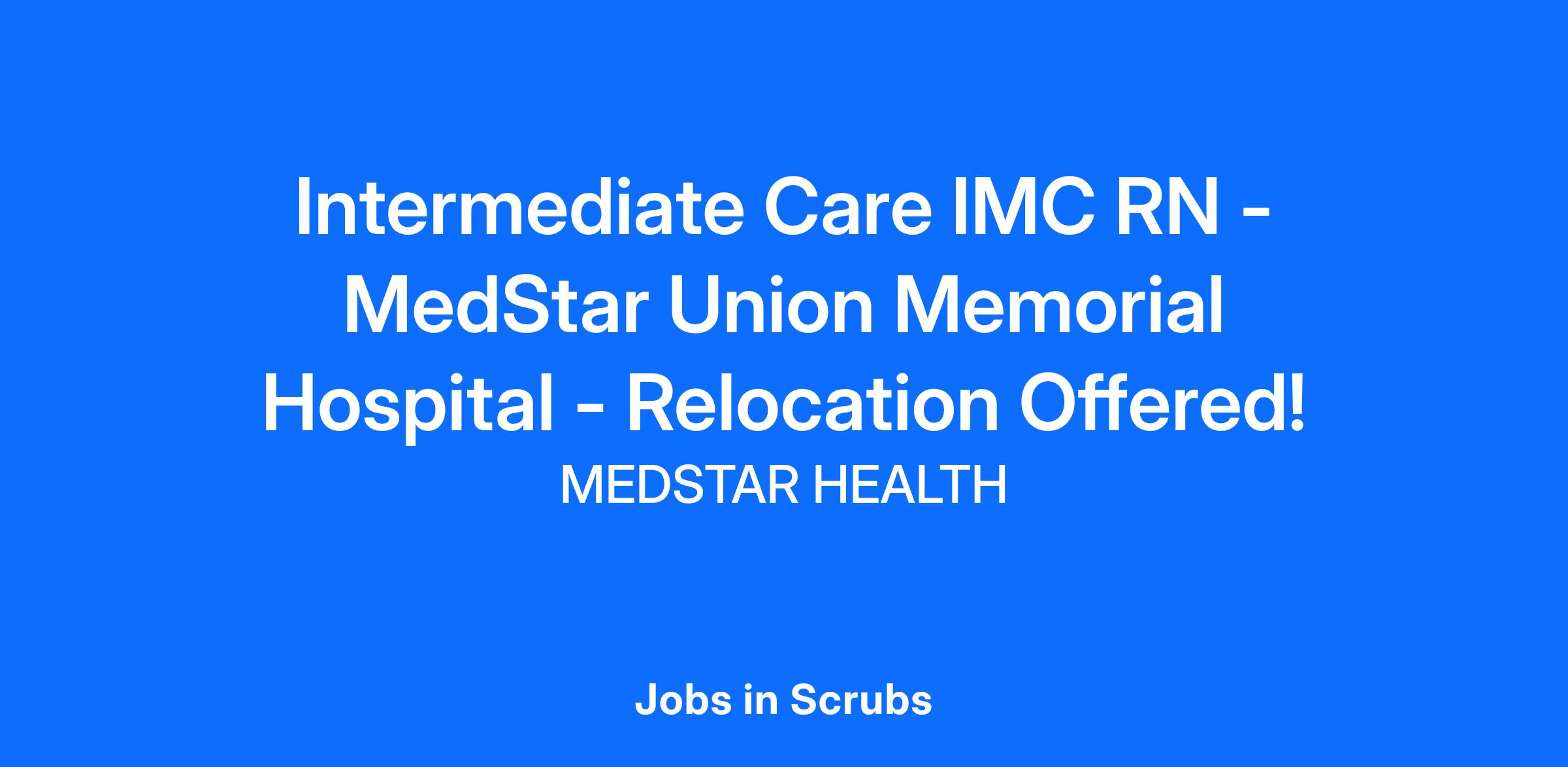 General Summary of Position Step into a fast-paced, high-acuity environment where your skills make an immediate impact. Join a team recognized for excellence in cardiac care, collaboration, and patient-centered innovation. · 22-bed cardiac specialty unit · Advanced clinical experience and meaningful challenges daily · Team-oriented, patient-centered environment focused on safety · 12-hour shifts with weekend on-call rotation Provide skilled, compassionate care to patients with routine to complex needs. Assess conditions, create care plans, and deliver or coordinate interventions in collaboration with the nursing team. · Culture – Supportive, inclusive, and collaborative · Growth – Career mentoring and skill development · Wellbeing – Competitive salary and comprehensive benefits · Reputation – Recognized regionally and nationally for innovation and excellence · ADN, BSN, MSN, or CNL from an accredited School of Nursing · Prior nursing experience preferred · Active MD RN or Compact RN license required · BLS for Healthcare Providers certificationIntermediate Care (IMC) – MedStar Union Memorial Hospital