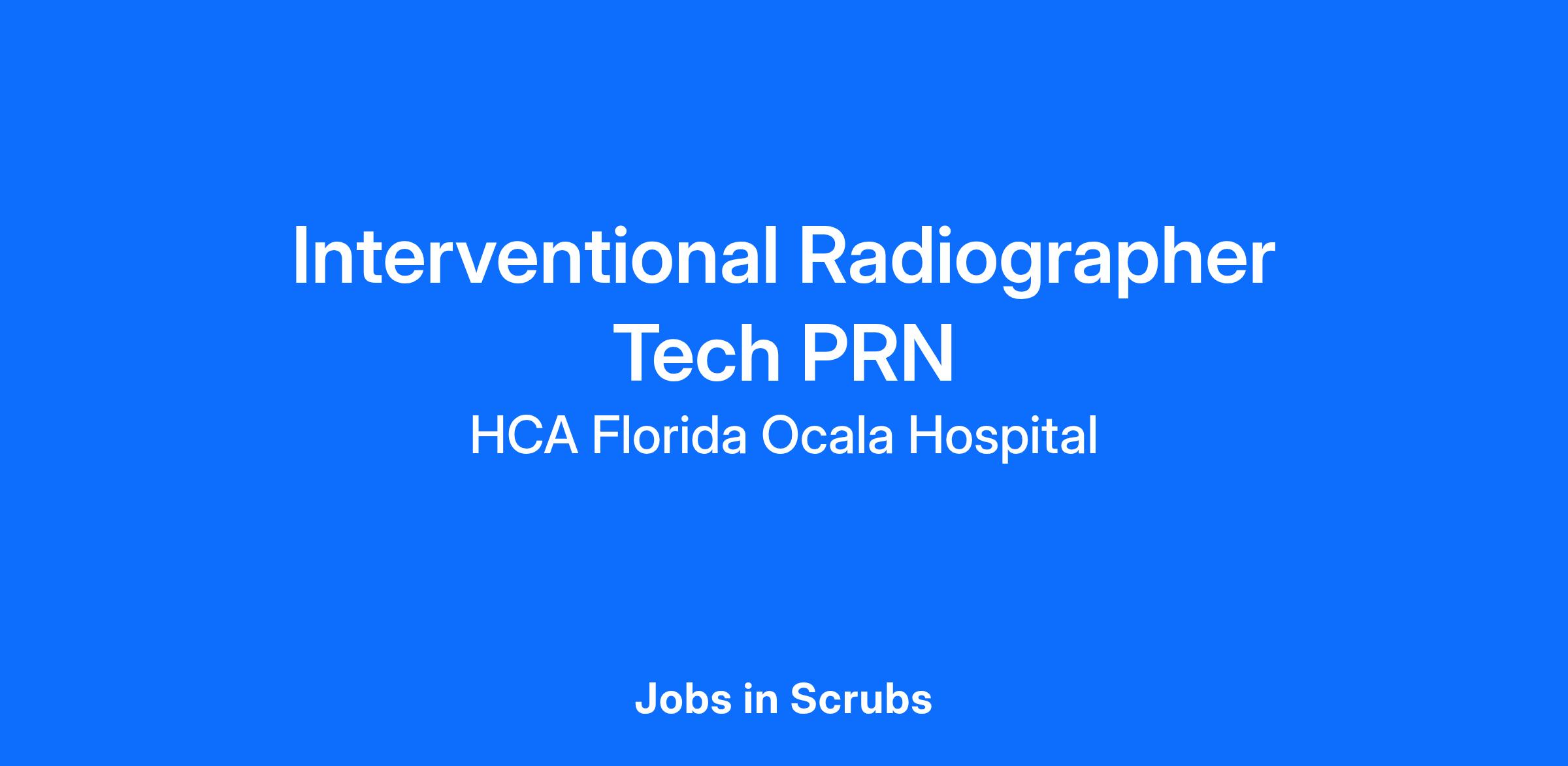 Do you want to join an organization that invests in you as an Interventional Radiographer Tech PRN? At HCA Florida Ocala Hospital, you come first. HCA Healthcare has committed up to $300 million in programs to support our incredible team members over the course of three years.