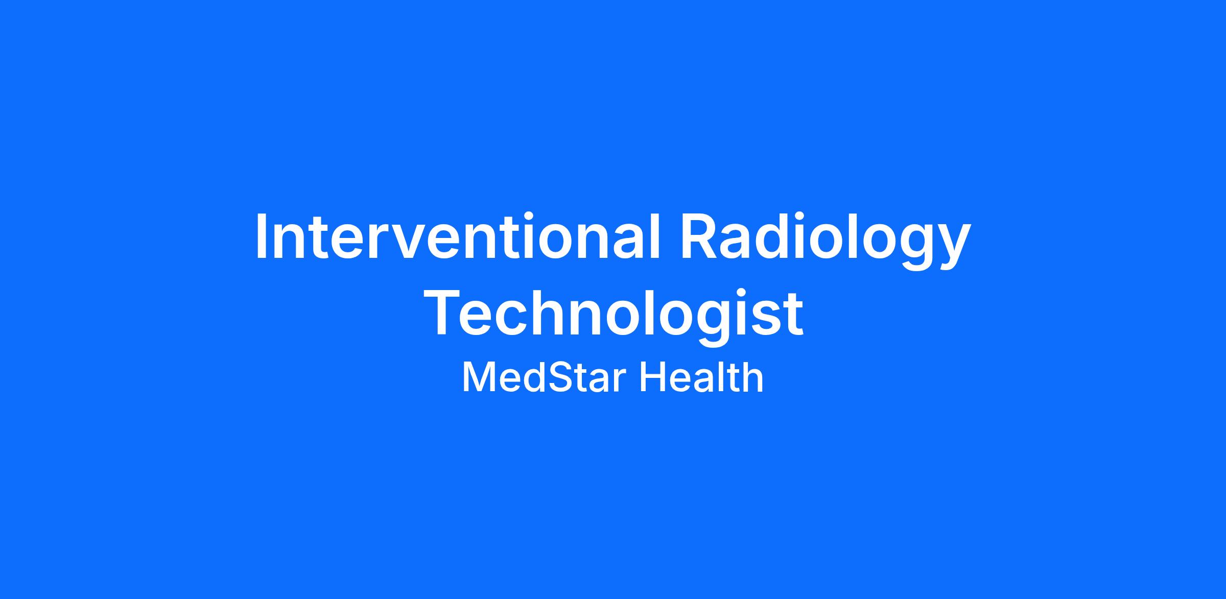 MedStar Health is looking for an Interventional Radiology Technologist to join our team!