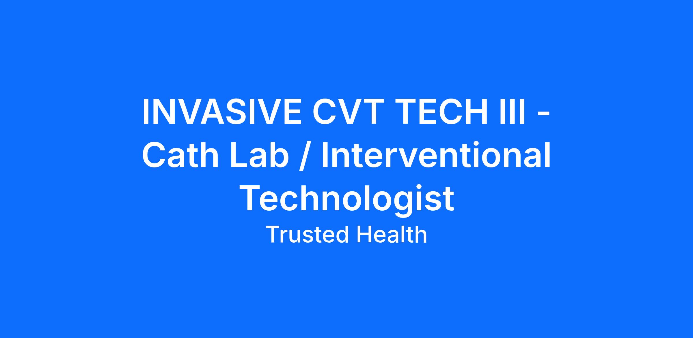 Required Credentials: Minimum of an Associate Degree or graduate of an approved Cardiovascular Training Program or graduate from an accredited Allied Health Program.