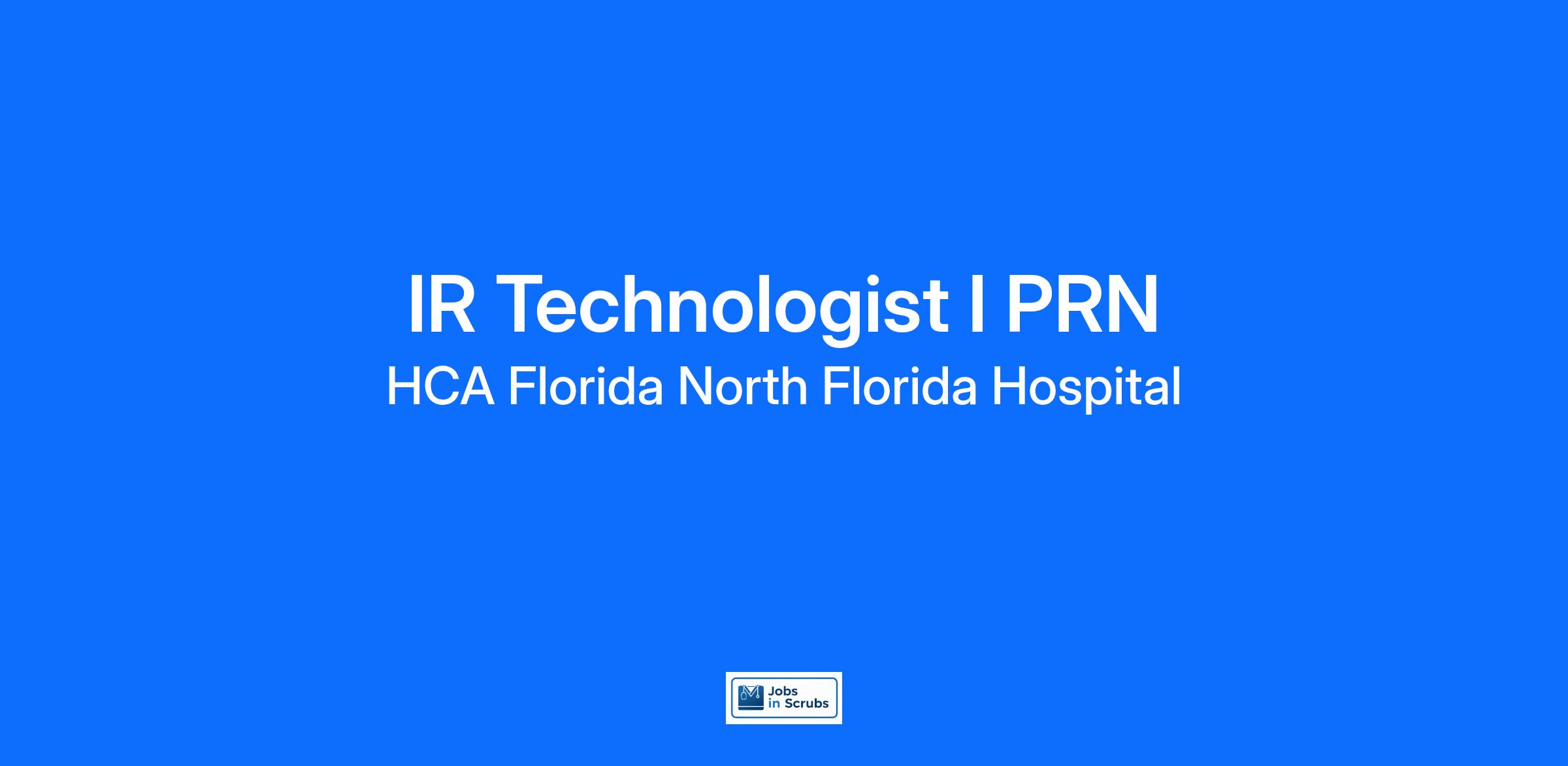 Do you want to join an organization that invests in you as a(an) IR Technologist I PRN? At HCA Florida North Florida Hospital, you come first. HCA Healthcare has committed up to $300 million in programs to support our incredible team members over the course of three years.