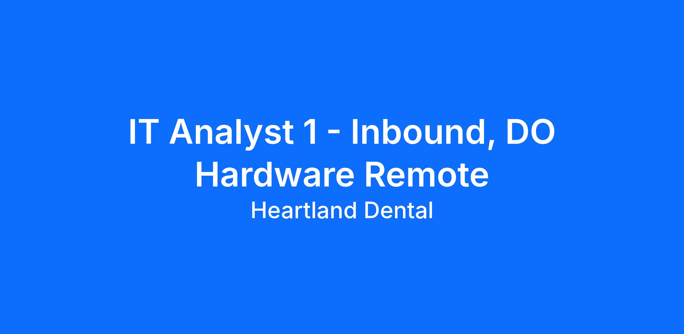 Are you passionate about technology and enjoy solving problems in a fast-paced, customer-focused environment? Join our team as an IT Analyst 1 – Inbound (DO Hardware) where you’ll provide remote assistance to dental team members, troubleshooting a variety of IT systems including software, hardware, networks, and digital imaging systems. You’ll serve as a key point of contact for technical inquiries, document and manage service desk tickets, and ensure issues are resolved or escalated efficiently.