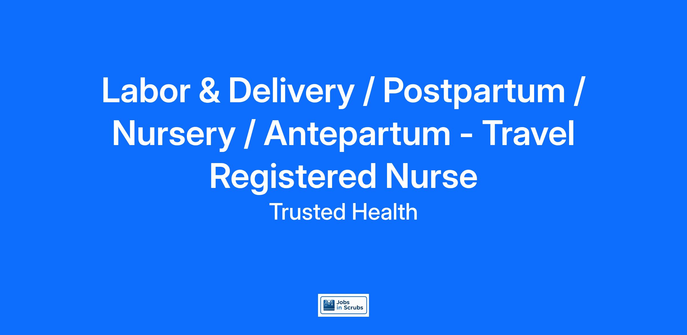 Required Skills/Experience: Must be able to care for antepartum, labor, postpartum, and nursery.