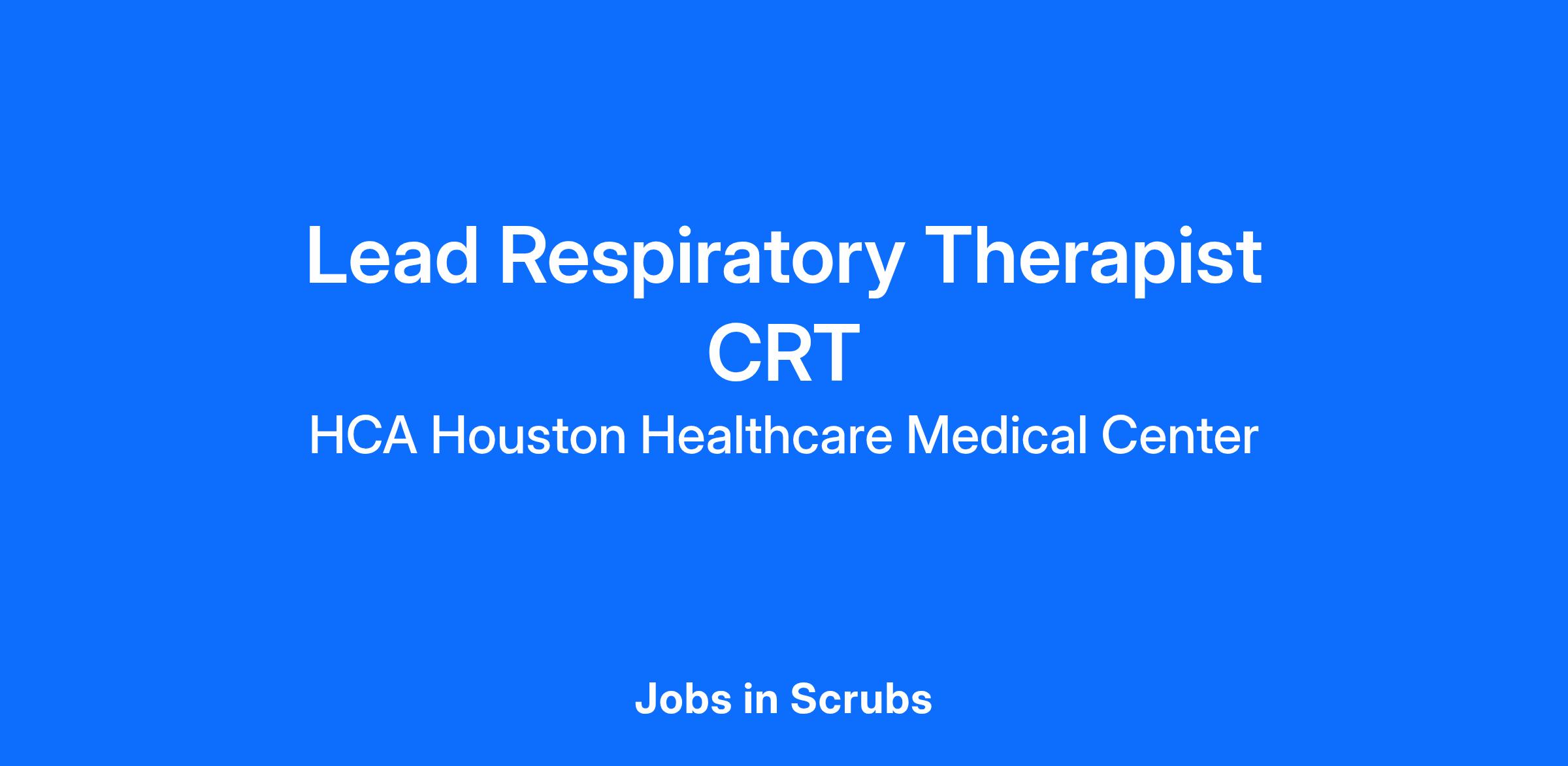 Are you passionate about the patient experience? At HCA Healthcare, we are committed to caring for patients with purpose and integrity. We care like family! Jump-start your career as a(an) Lead Respiratory Therapist CRT today with HCA Houston Healthcare Medical Center.