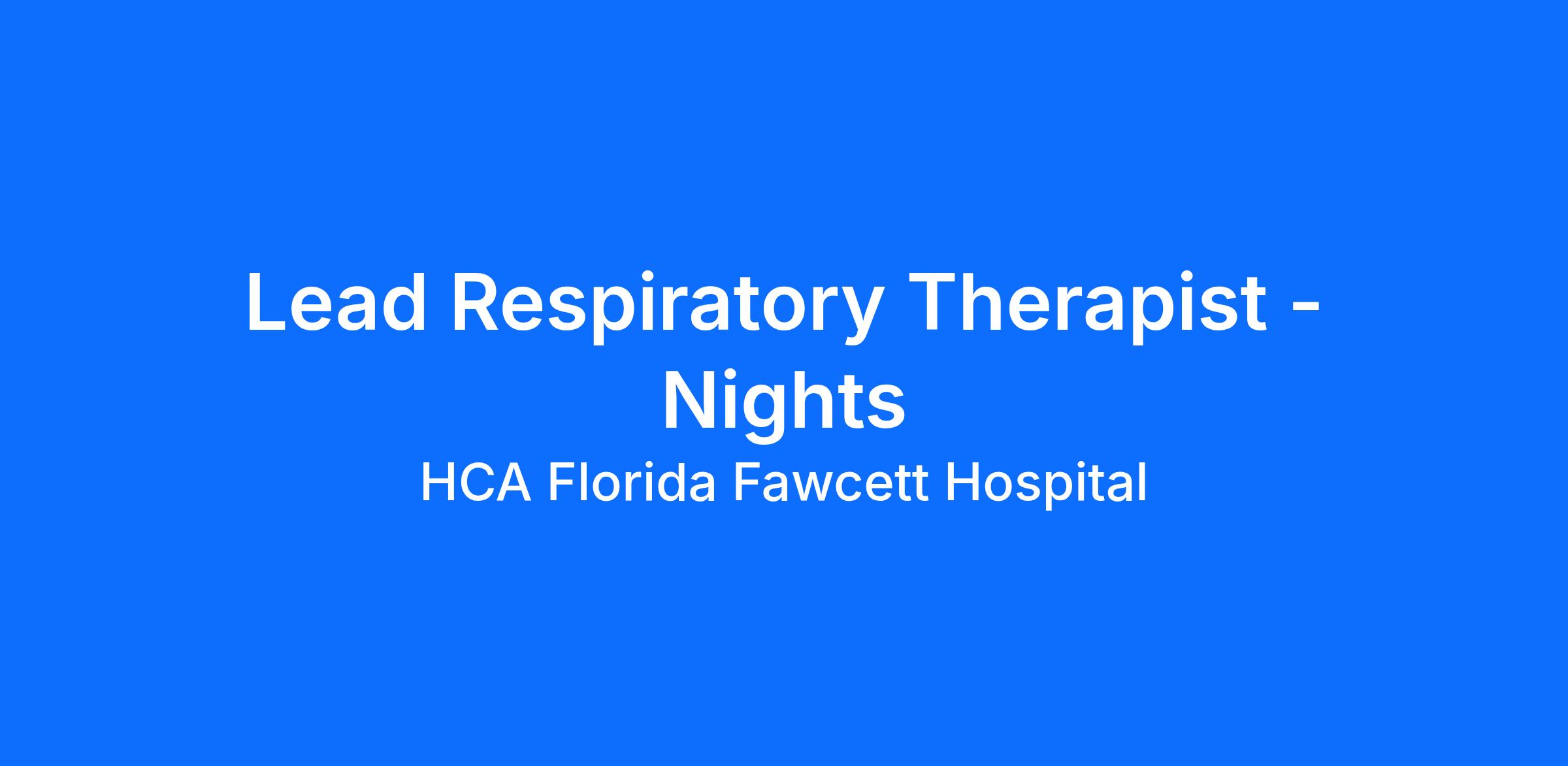 Do you have the career opportunities as a Lead Respiratory Therapist you want with your current employer? We have an exciting opportunity for you to join HCA Florida Fawcett Hospital which is part of the nation's leading provider of healthcare services, HCA Healthcare.
