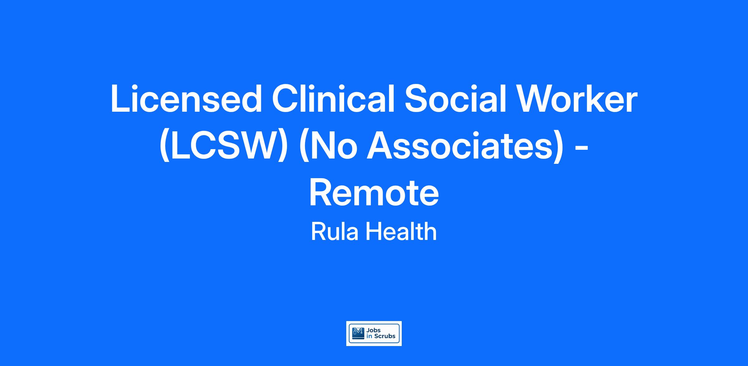 Licensed Clinical Social Worker (LCSW) (No Associates) - Remote