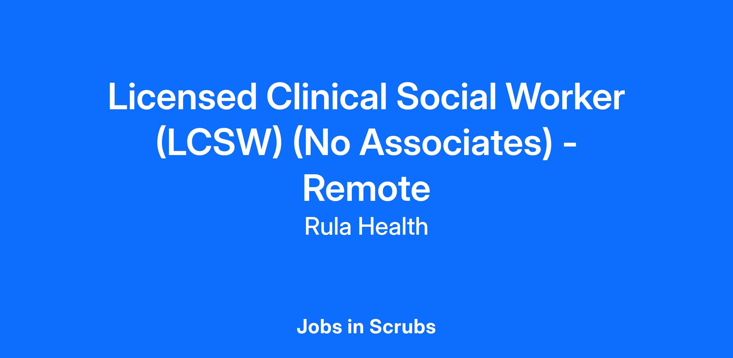 Licensed Clinical Social Worker (LCSW) (No Associates) - Remote