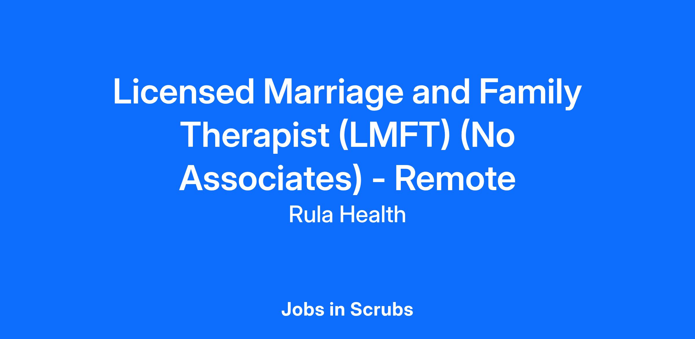 Licensed Marriage and Family Therapist (LMFT) (No Associates) - Remote