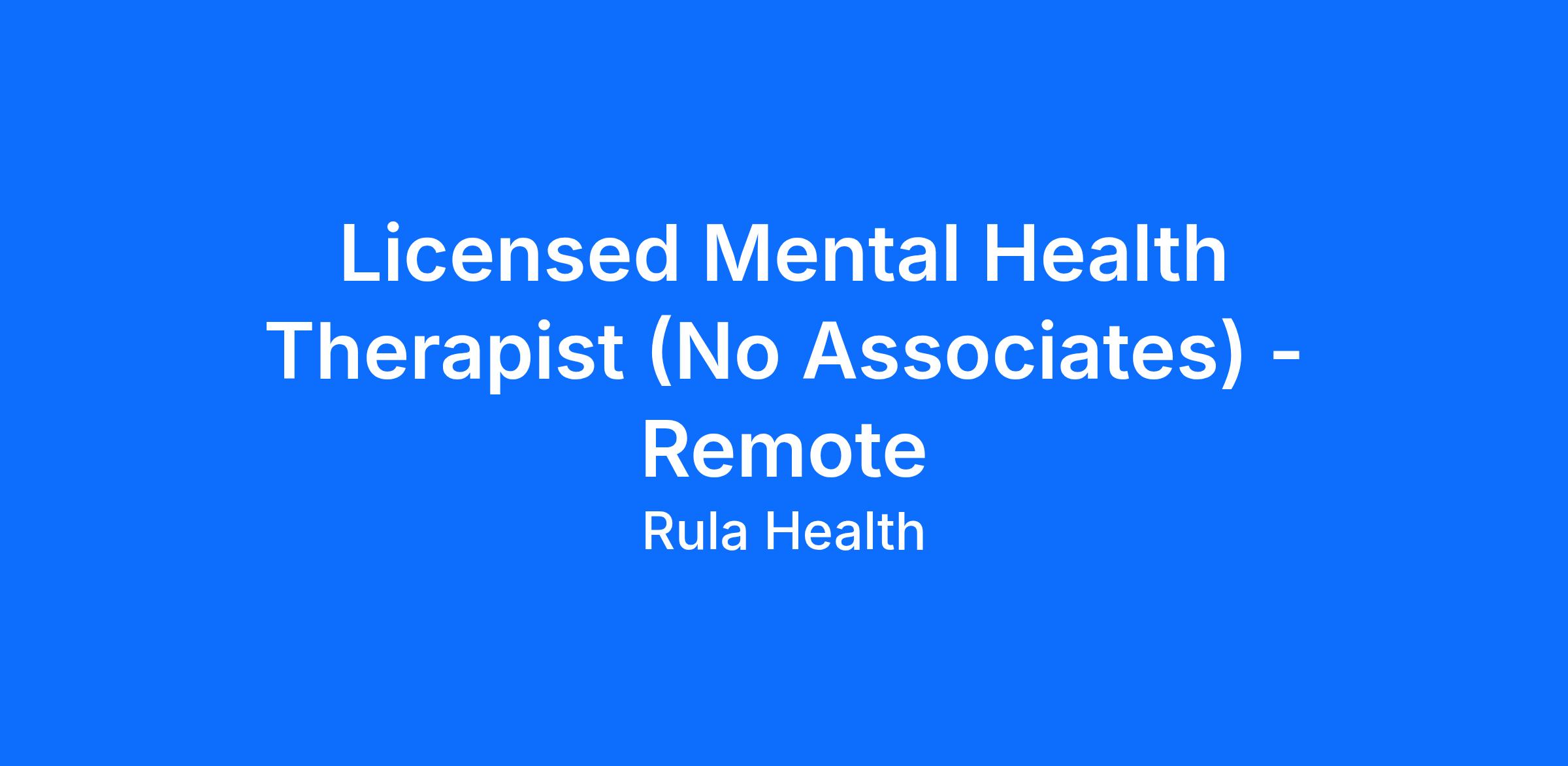 Licensed Mental Health Therapist (No Associates) - Remote