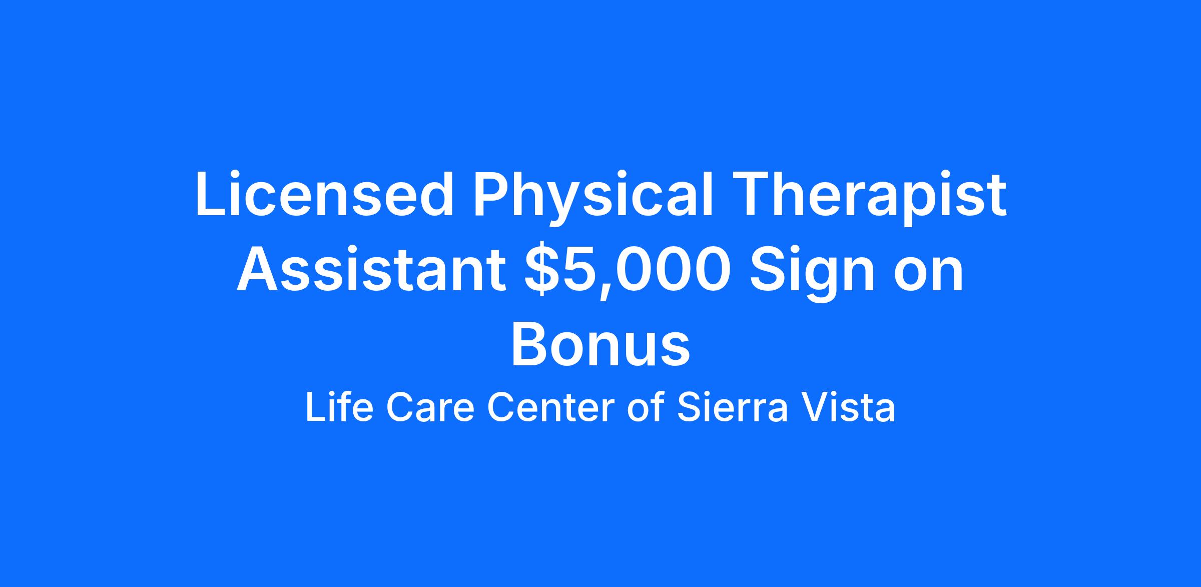 Life Care Center of Sierra Vista, AZ is offering a $5,000 sign-on bonus for full-time physical therapist assistants.