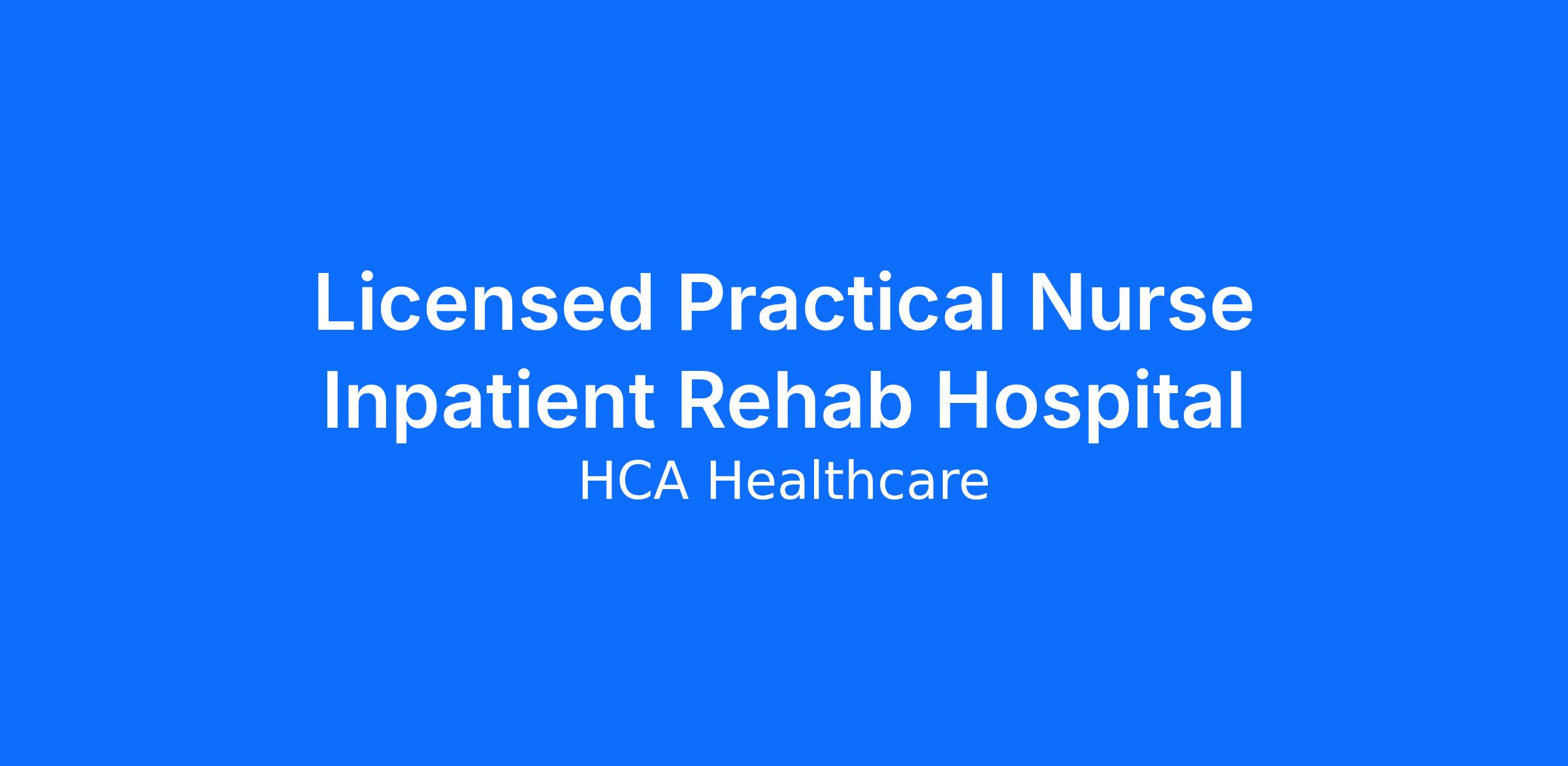 Experience the HCA Healthcare difference where colleagues are trusted, valued members of our healthcare team. Grow your career with an organization committed to delivering respectful, compassionate care, and where the unique and intrinsic worth of each individual is recognized. Submit your application for the opportunity below: Licensed Practical Nurse with our Inpatient Rehabilitation Hospital!
