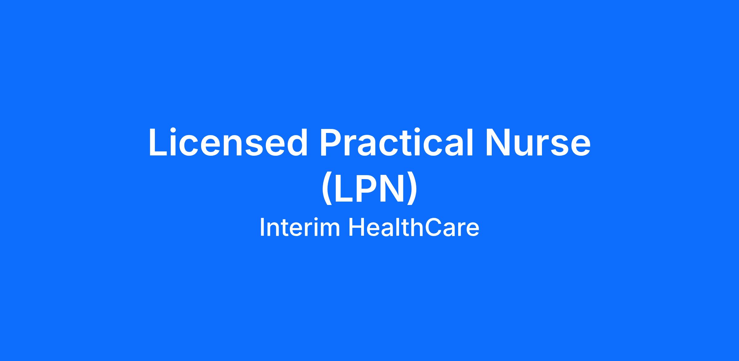 As a Licensed Practical Nurse (LPN) you will be called to care when you're needed most. As part of Interim Healthcare, you'll support a full range of patient services to bring comfort and dignity to our clients.