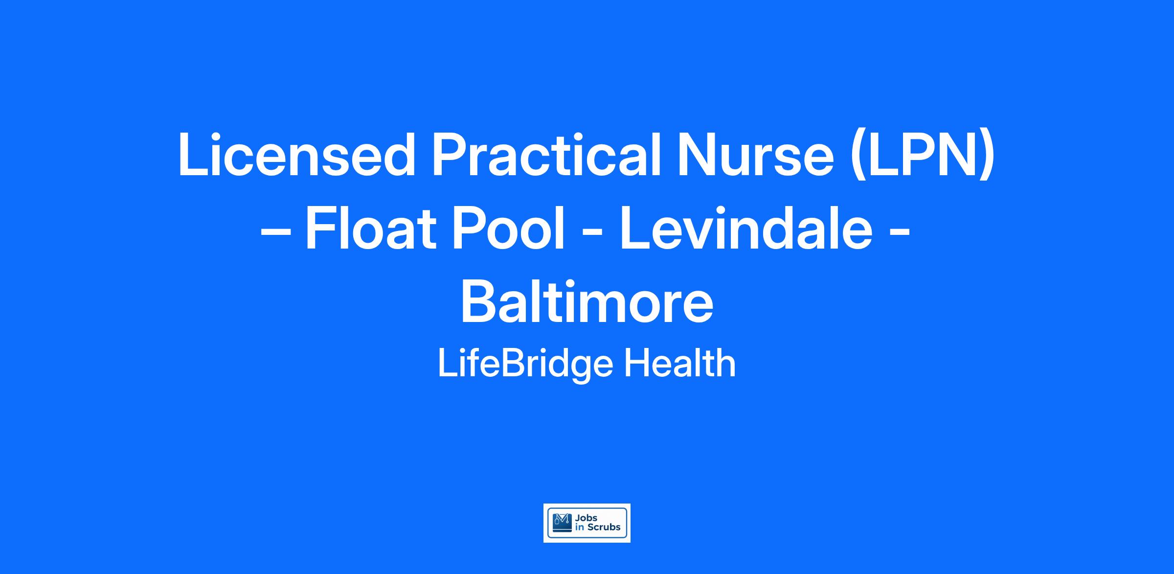 Licensed Practical Nurse (LPN) – Float Pool - Levindale - Baltimore