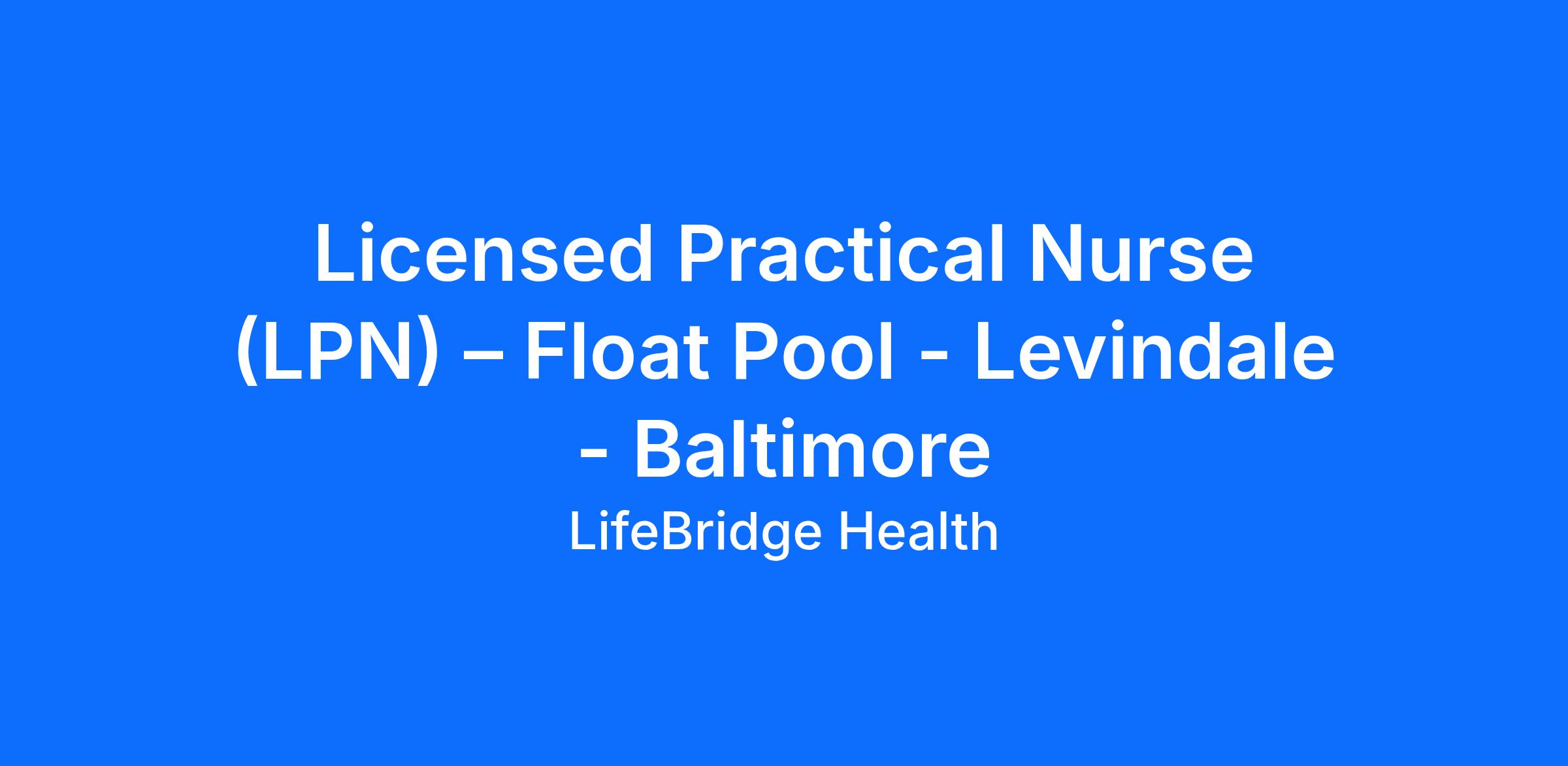 Licensed Practical Nurse (LPN) – Float Pool - Levindale - Baltimore