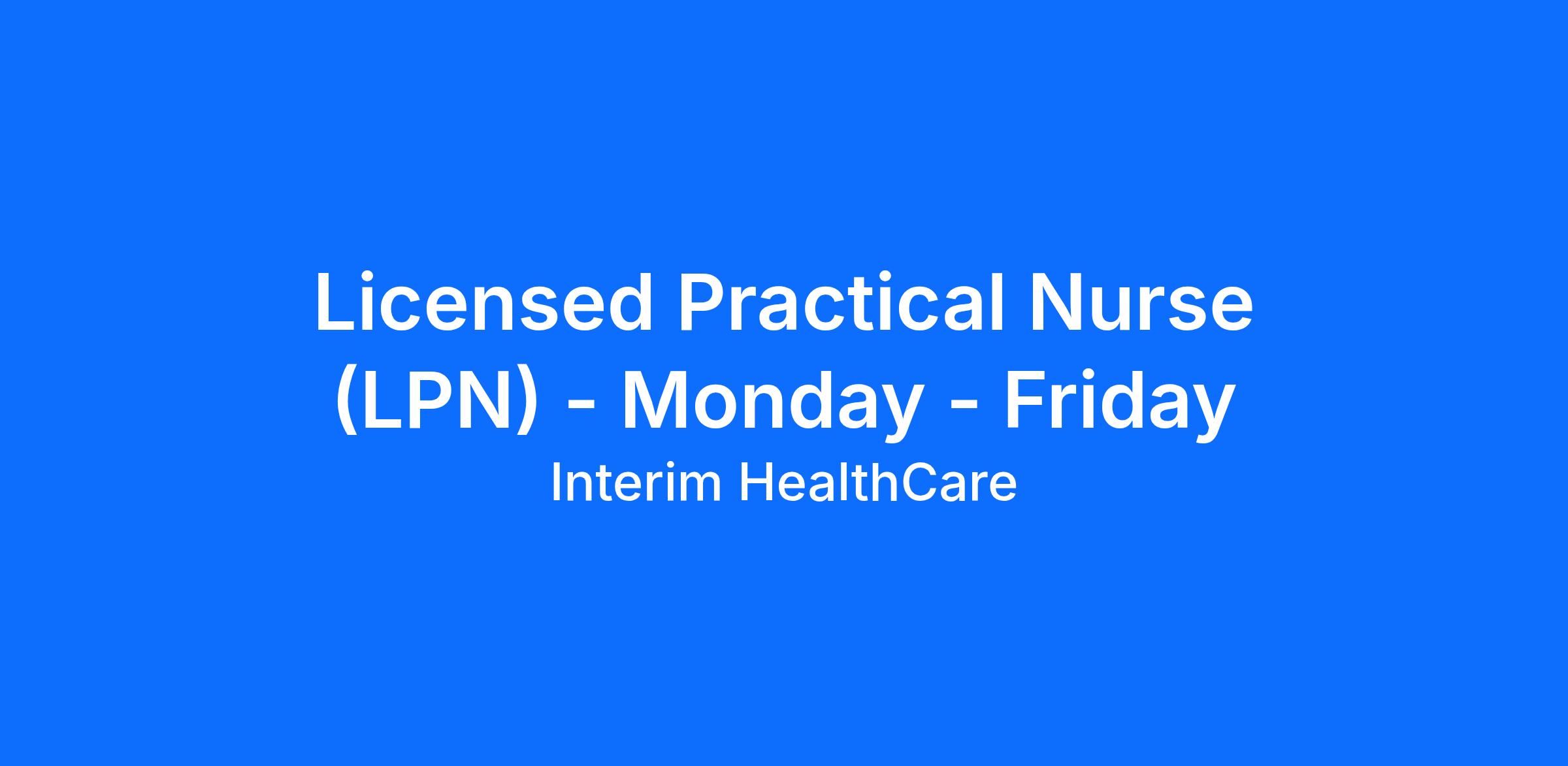 Licensed Practical Nurse (LPN) you will be called to care when you're needed most. As part of Interim Healthcare, you'll support a full range of patient services to bring comfort and dignity to our clients.