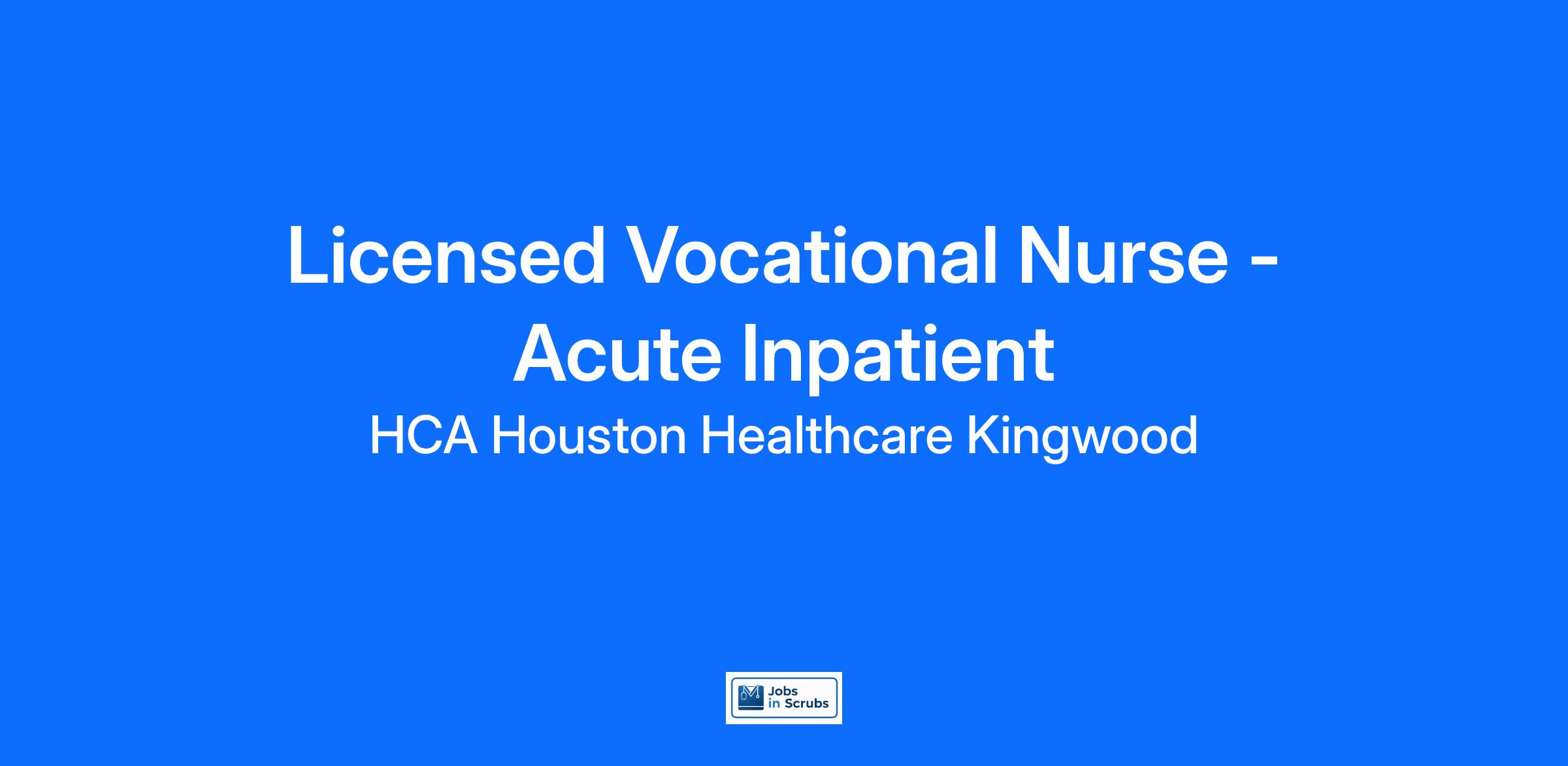 Experience the HCA Healthcare difference where colleagues are trusted, valued members of our healthcare team. Grow your career with an organization committed to delivering respectful, compassionate care, and where the unique and intrinsic worth of each individual is recognized. Submit your application for the opportunity below:LPN-LVN Med-SurgHCA Houston Healthcare Kingwood