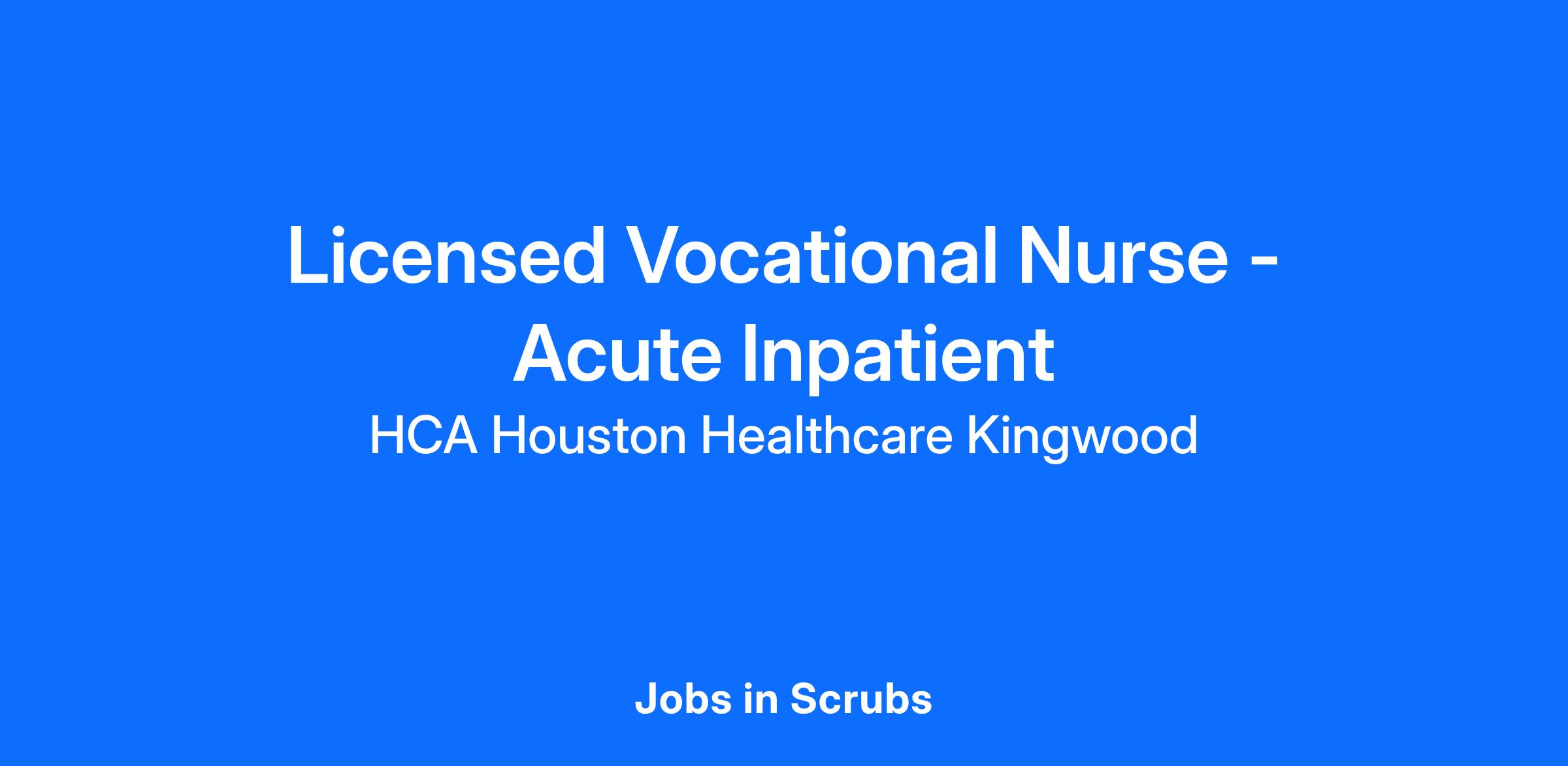 Experience the HCA Healthcare difference where colleagues are trusted, valued members of our healthcare team. Grow your career with an organization committed to delivering respectful, compassionate care, and where the unique and intrinsic worth of each individual is recognized. Submit your application for the opportunity below:LPN-LVN Med-SurgHCA Houston Healthcare Kingwood