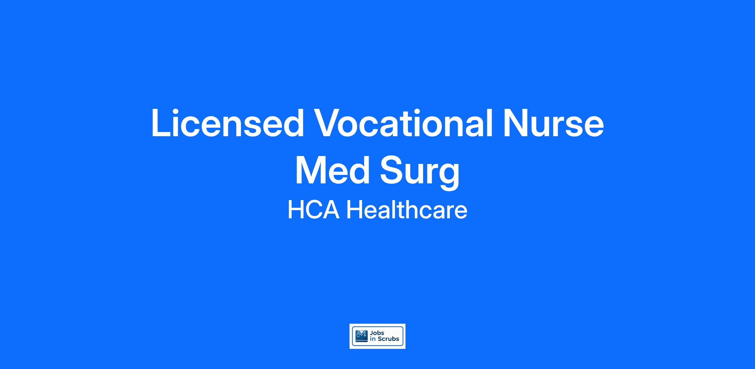 Come join our team as a(an) Licensed Vocational Nurse Med Surg. We care for our community! Just last year, HCA Healthcare and our colleagues donated $13.8 million dollars to charitable organizations. Apply Today!