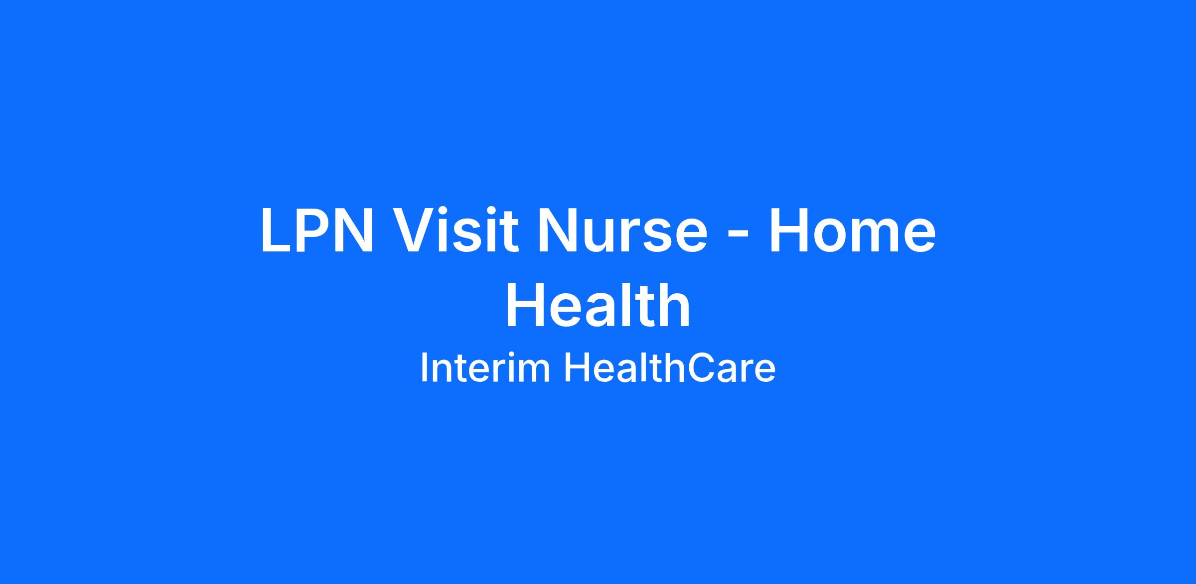 As a Licensed Practical Nurse (LPN) Visit Nurse you will be called to care when you're needed most. As part of Interim Healthcare Home Health, you'll support a full range of patient services to bring comfort and dignity to our clients.