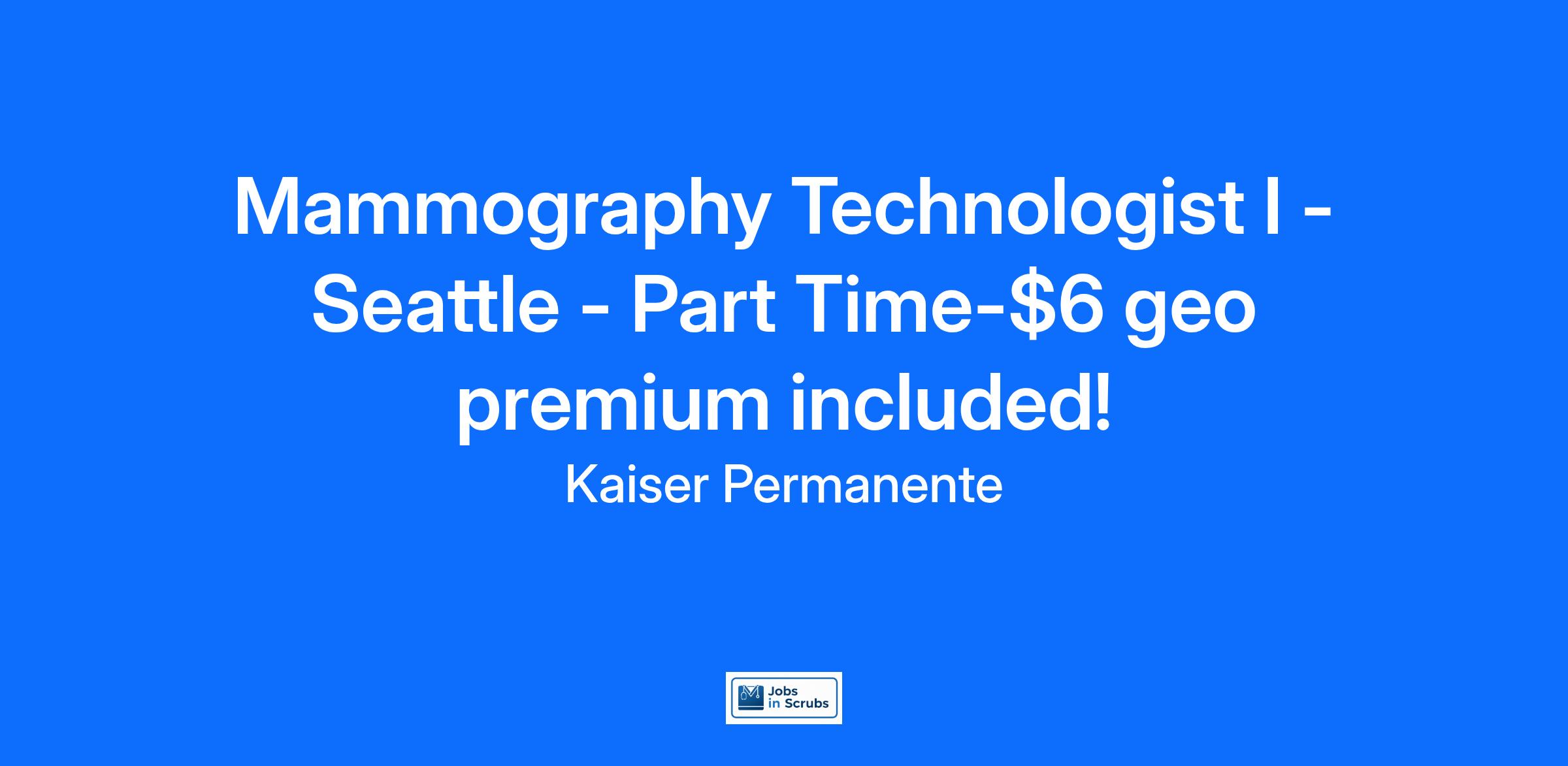 - State of Washington certification as Mammography Technologist and American Registry of Mammography Technologists (AART-M) registration by date of hire or will train radiology technician with two (2) years experience.
