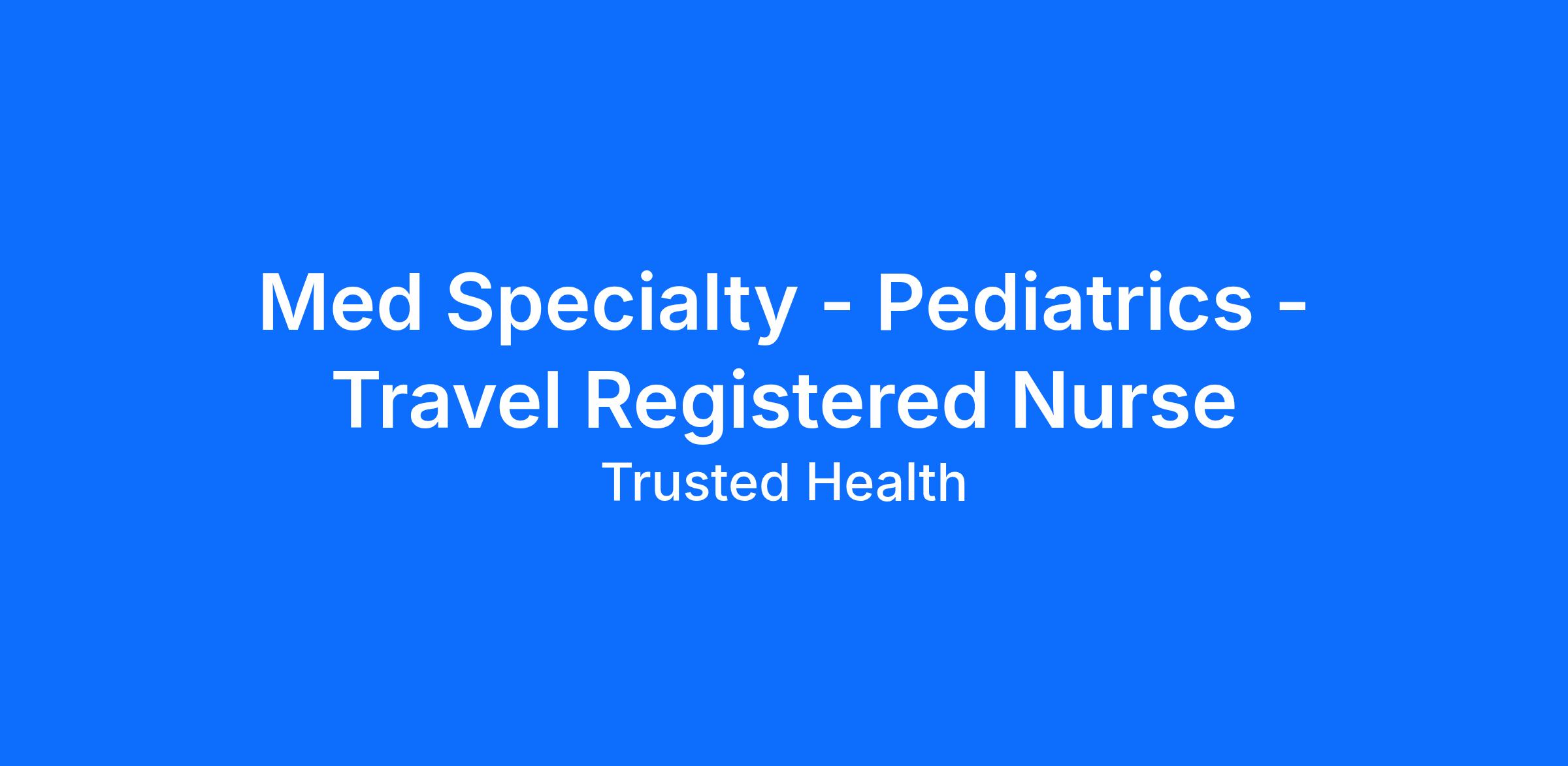 Med Specialty - Pediatrics - Travel Registered Nurse