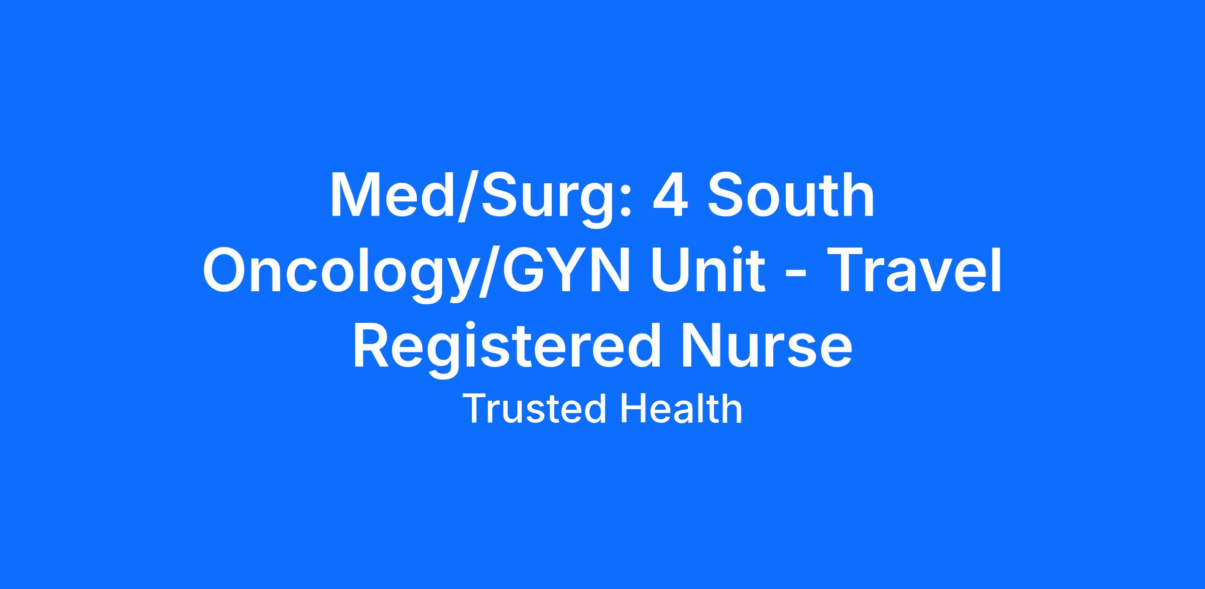Trusted is seeking an experienced nurse for this exciting travel nursing assignment. Trusted has streamlined the travel nursing experience by enabling nurses to apply directly to jobs without the need for recruiters. This unique approach provides more transparency, eliminates pesky calls from recruiters, and puts more money in your pocket. Join the thousands of nurses across the country who have already made the switch to a more modern way to work.