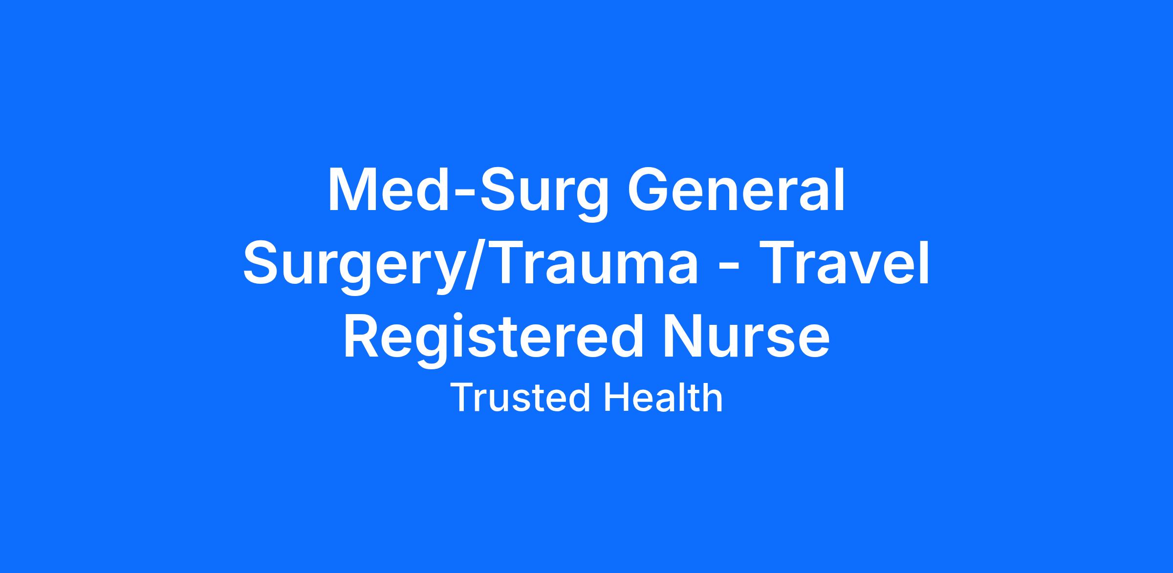 Trusted is seeking an experienced nurse for this exciting travel nursing assignment. Trusted has streamlined the travel nursing experience by enabling nurses to apply directly to jobs without the need for recruiters. This unique approach provides more transparency, eliminates pesky calls from recruiters, and puts more money in your pocket. Join the thousands of nurses across the country who have already made the switch to a more modern way to work.