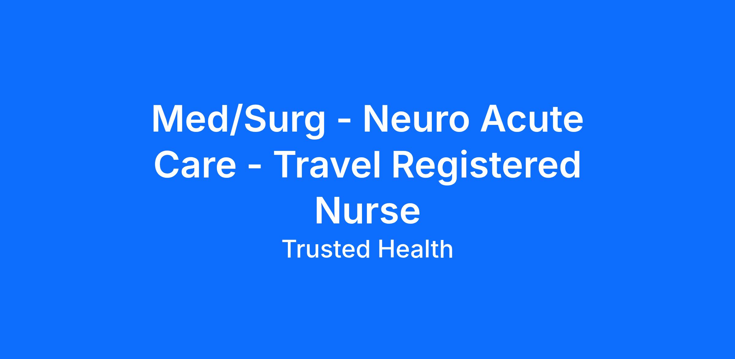 Trusted is seeking an experienced nurse for this exciting travel nursing assignment. Trusted has streamlined the travel nursing experience by enabling nurses to apply directly to jobs without the need for recruiters. This unique approach provides more transparency, eliminates pesky calls from recruiters, and puts more money in your pocket. Join the thousands of nurses across the country who have already made the switch to a more modern way to work.