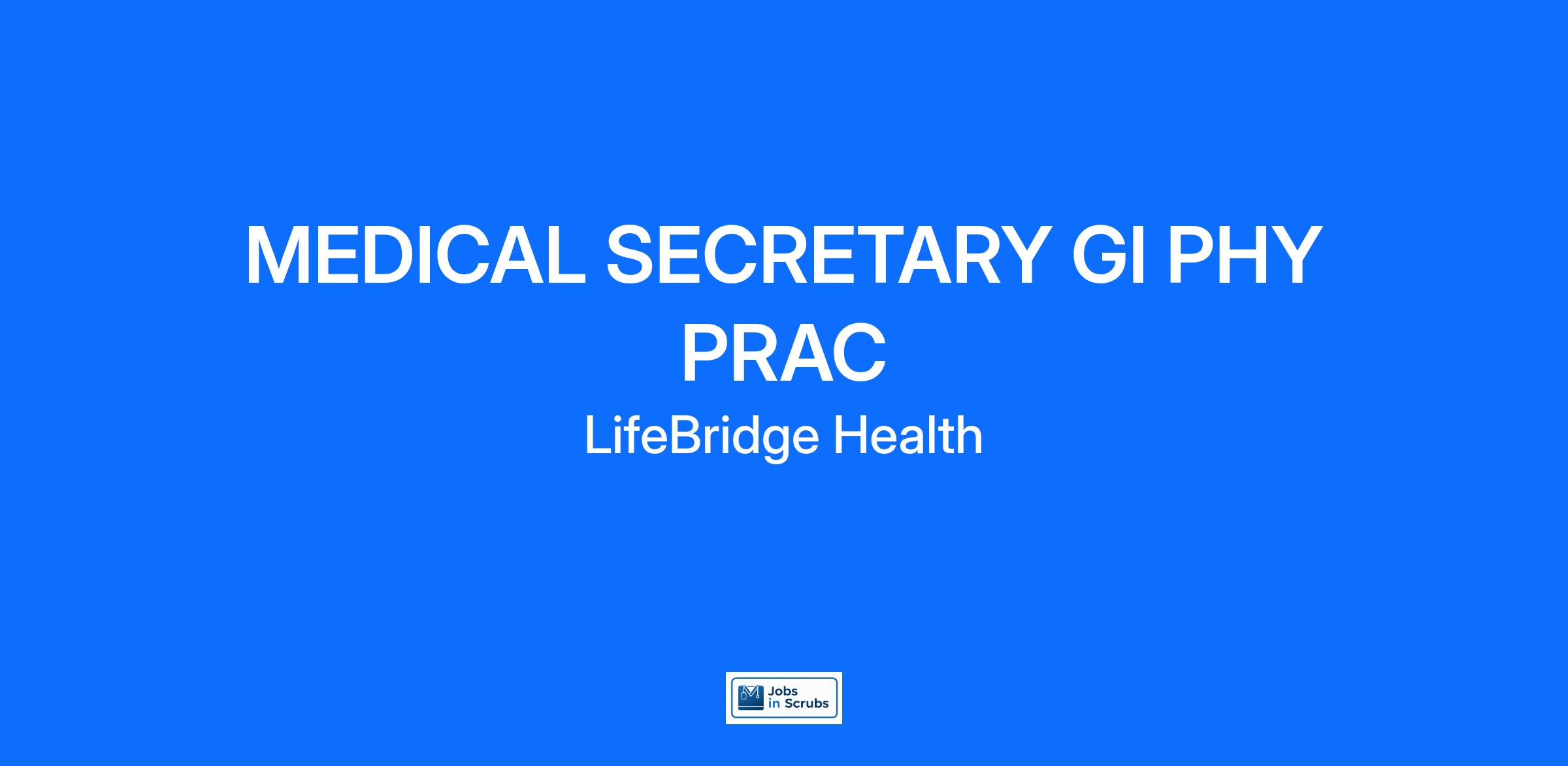 Key Responsibilities: The Medical Secretary GI will perform a variety of secretarial functions to assist physicians practice administrator in the office setting.