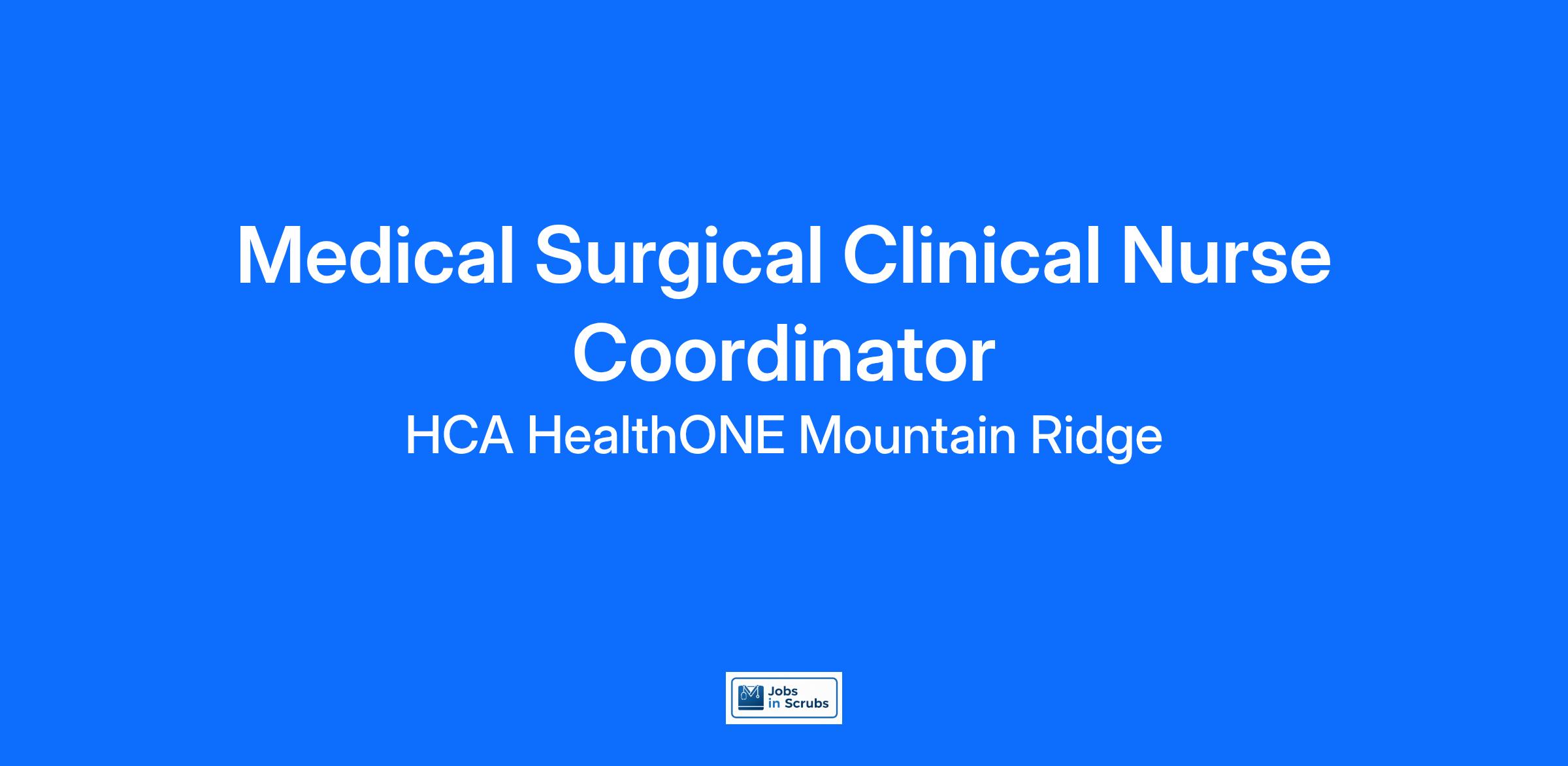 Do you currently have an opportunity to make a real impact with your work? With over 2,000 sites of care and serving over 31.2 million patient interactions every year, nurses at HCA HealthONE Mountain Ridge have the opportunity to make a real impact. As a(an) Med Surg Clinical Nurse Coordinator you can be a part of change.