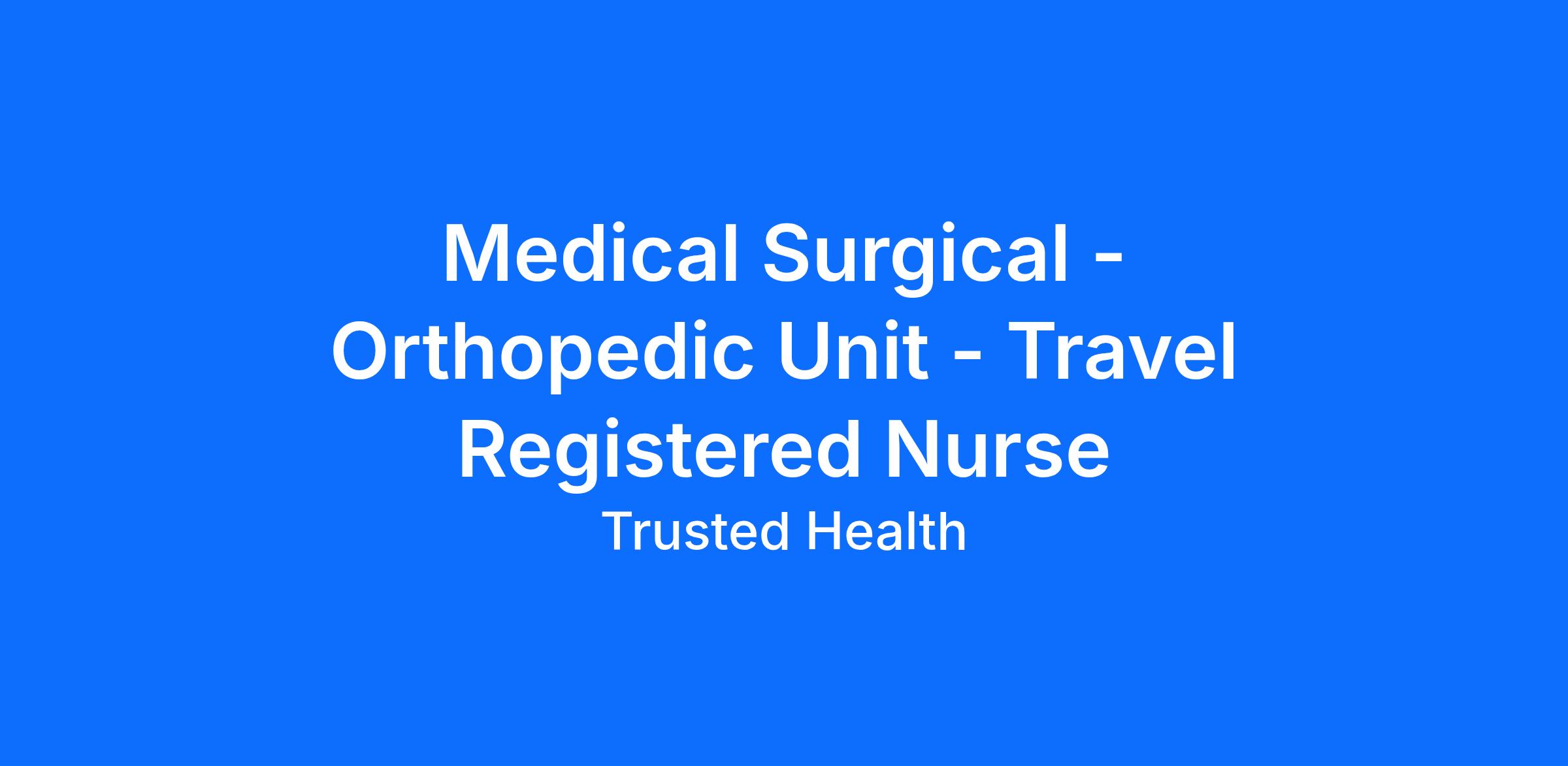 Trusted is seeking an experienced nurse for this exciting travel nursing assignment. Trusted has streamlined the travel nursing experience by enabling nurses to apply directly to jobs without the need for recruiters. This unique approach provides more transparency, eliminates pesky calls from recruiters, and puts more money in your pocket. Join the thousands of nurses across the country who have already made the switch to a more modern way to work.