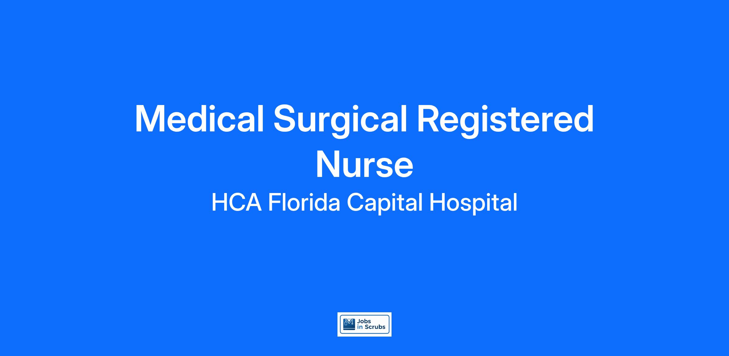 Do you want to be appreciated daily? Our nurses are celebrated for being on the front line, empathetic for patients. At HCA Florida Capital Hospital our nurses set us apart from any other healthcare provider. We are seeking a(an) Medical Surgical Registered Nurse to join our healthcare family.