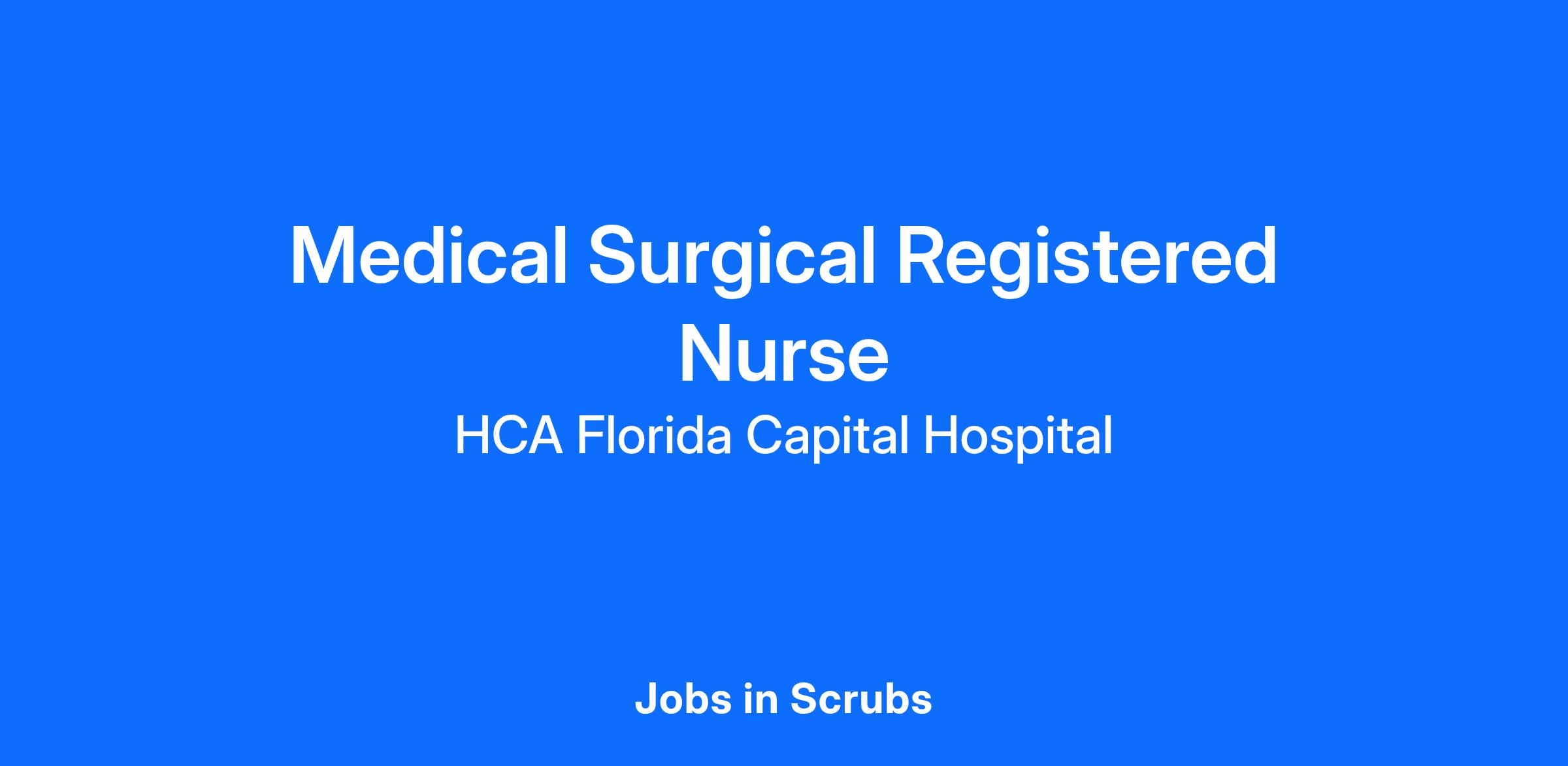 Do you want to be appreciated daily? Our nurses are celebrated for being on the front line, empathetic for patients. At HCA Florida Capital Hospital our nurses set us apart from any other healthcare provider. We are seeking a(an) Medical Surgical Registered Nurse to join our healthcare family.