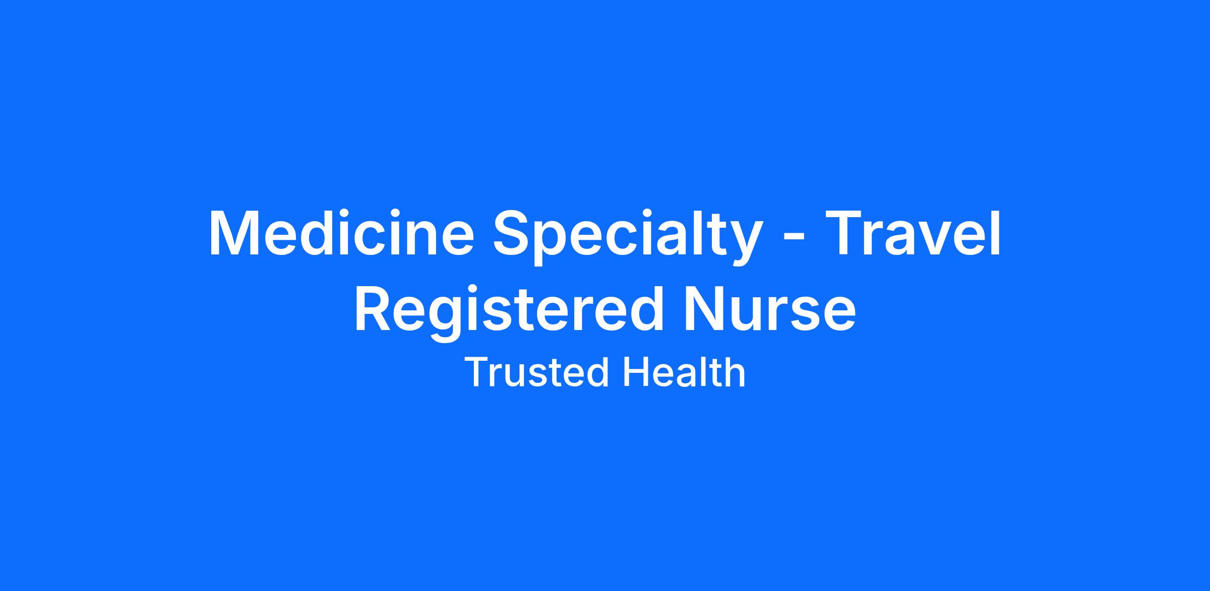 Medicine Specialty - Travel Registered Nurse