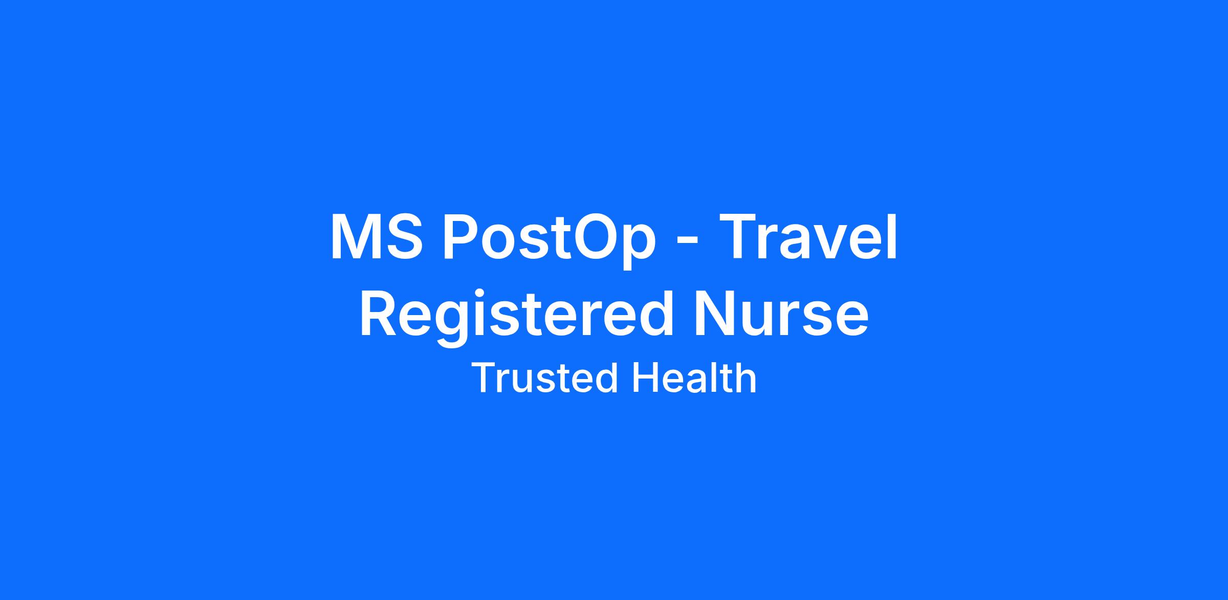 Trusted is seeking an experienced nurse for this exciting travel nursing assignment. Trusted has streamlined the travel nursing experience by enabling nurses to apply directly to jobs without the need for recruiters. This unique approach provides more transparency, eliminates pesky calls from recruiters, and puts more money in your pocket. Join the thousands of nurses across the country who have already made the switch to a more modern way to work.