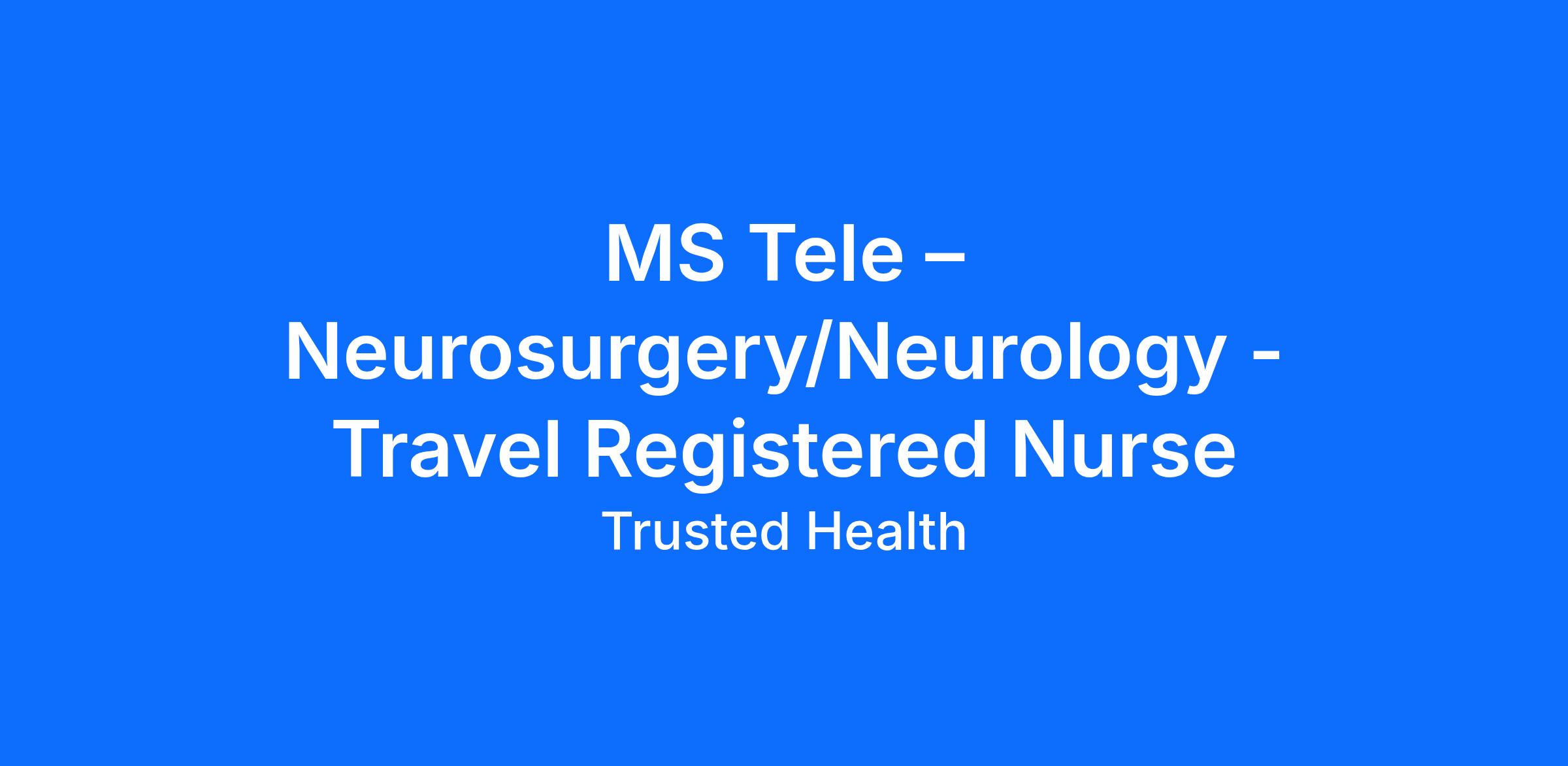 Required Skills/Experience: Med Surg/Tele RN - experience with neurology patients- Minimum 2 years’ neuro med surg experience