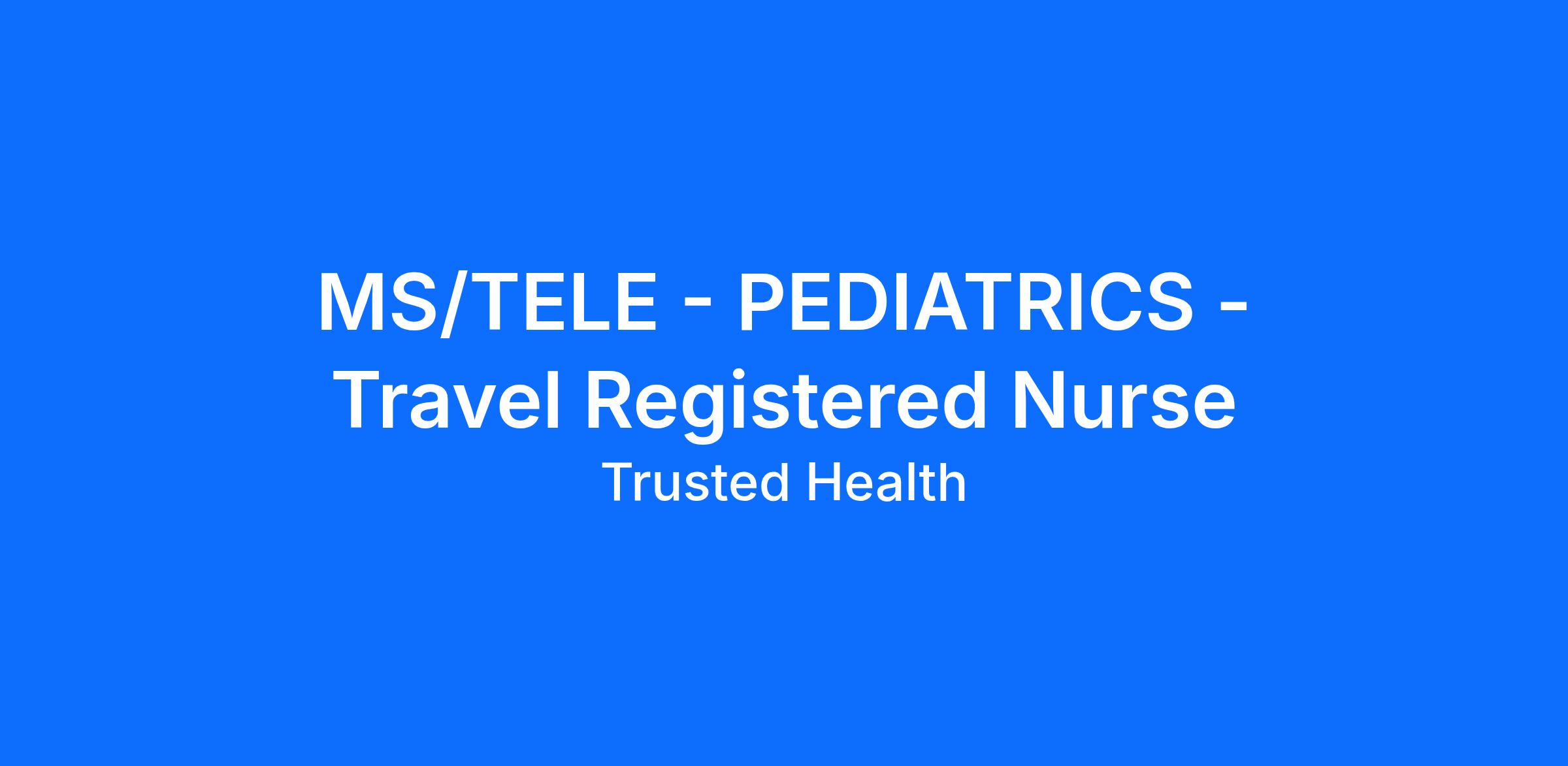 Required Skills/Experience: - 2 years; 3 years of Tele - Telemetry, post-op cath care, cardiac drips with titration, management of dysrhythmias, interpretation of dysrhythmias - Patient population includes general med-surg, pediatrics, hemo and peritoneal dialysis, cardiac drips, and post-cardiac procedures - Common diagnosis/treatment: stroke, CHF, A-fib, arrhythmias, cardiac caths/stents, and med-surg