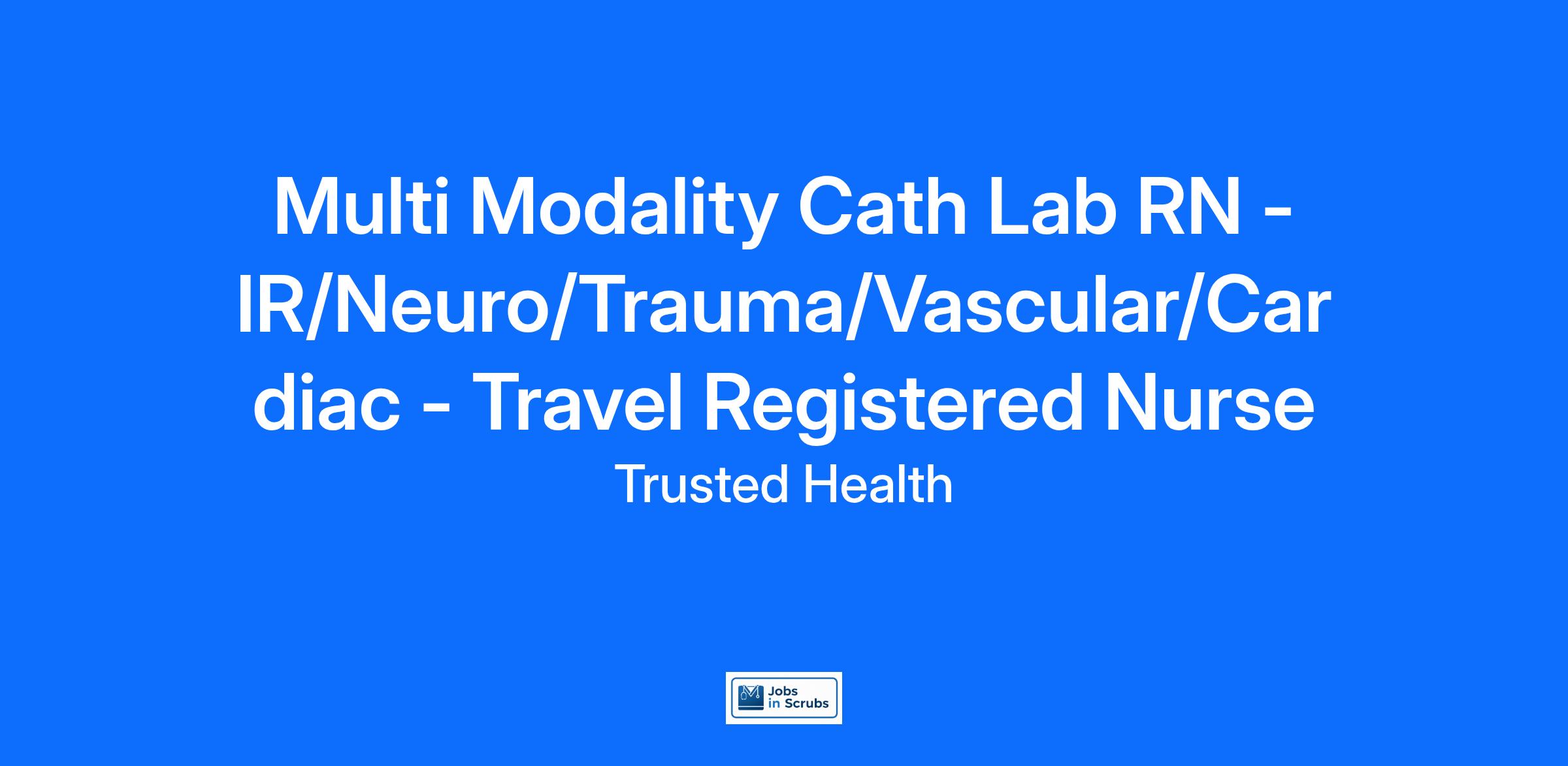 Multi Modality Cath Lab RN - IR/Neuro/Trauma/Vascular/Cardiac