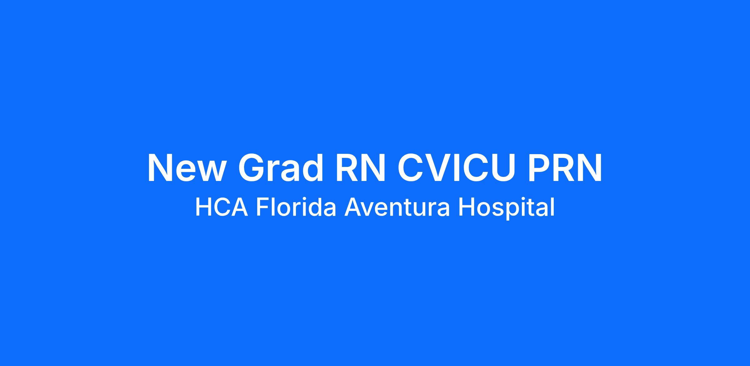Do you have the PRN career opportunities as a(an) New Grad RN CVICU PRN you want with your current employer? We have an exciting opportunity for you to join HCA Florida Aventura Hospital which is part of the nation's leading provider of healthcare services, HCA Healthcare.