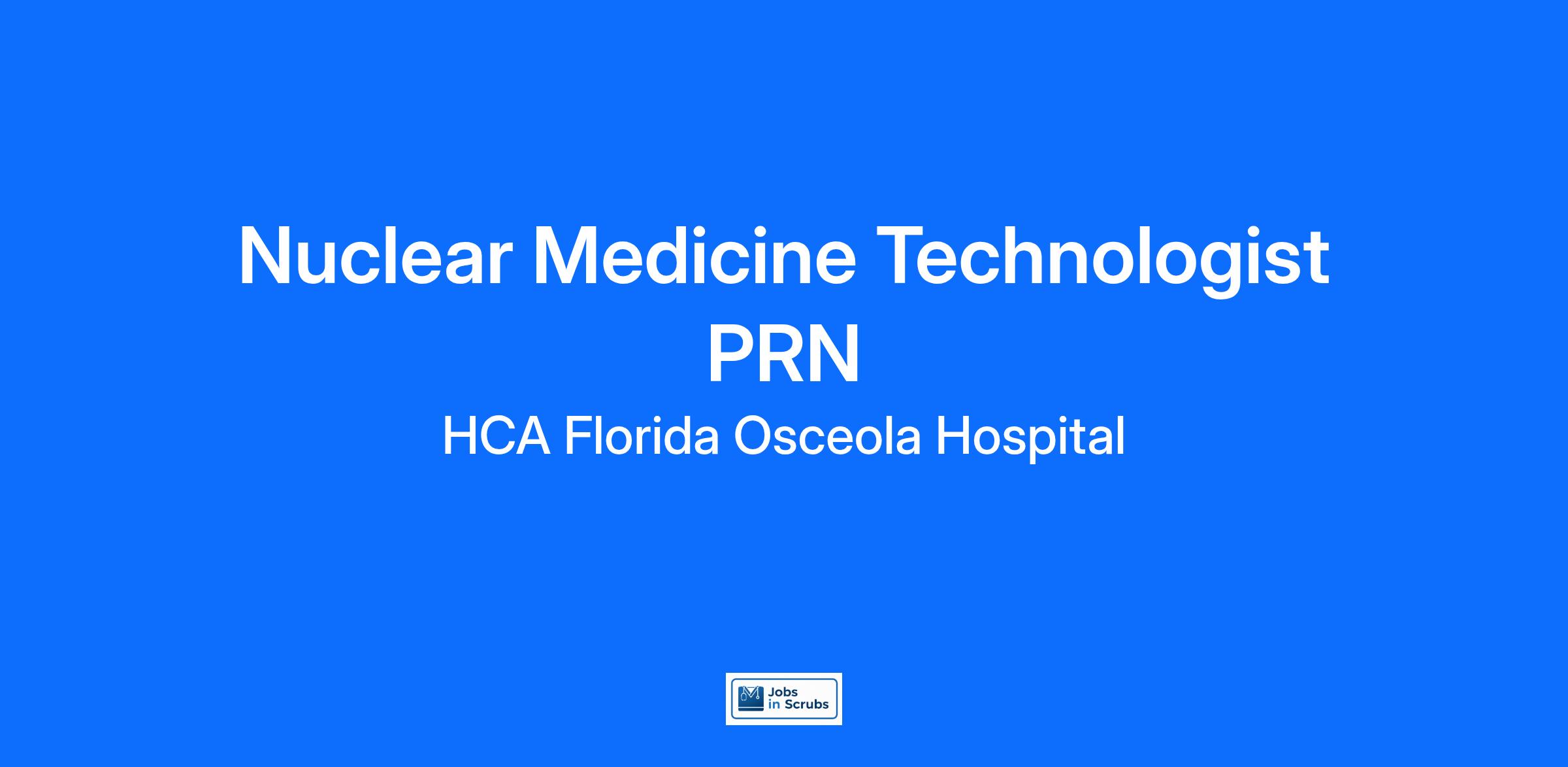 Do you want to join an organization that invests in you as a(an) Nuclear Medicine Technologist PRN? At HCA Florida Osceola Hospital, you come first. HCA Healthcare has committed up to $300 million in programs to support our incredible team members over the course of three years.